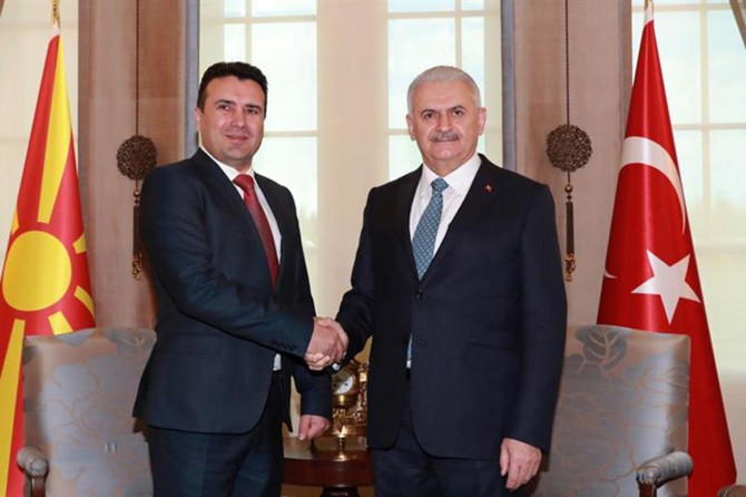 Serokwezîr Bînalî Yildirim digel Serokwezîrê Makedonyayê Zoran Zaev li Qesra Çankayayê daxuyanîyeke çapemenîyê ya hevpar da.