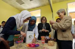 Gaziantep Ortak Akıl Platformu Okulunu ziyaret eden Bokova’ya Gaziantep Büyükşehir Belediyesi Başkanı Fatma Şahin ile Suriyeli eğitimciler de eşlik etti. Suriyeli öğrencilere yönelik çalışmalar ve verilen eğitimlerle ilgili bilgi alan Bokova, öğrencilerin yaptığı el işlerine de büyük ilgi gösterdi.