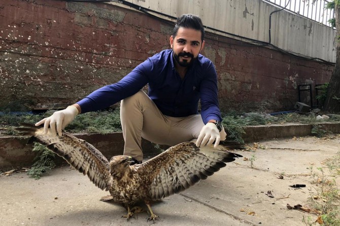 Yaralı şahin tedavi edilip doğal ortama bırakıldı