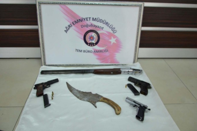 Açıklamada, "Yakalanan şahısların ikamet aramalarında; 2 adet ruhsatsız tabanca, 1 adet faturasız kurusıkı tabanca, 2 adet ruhsatsız av tüfeği, 1 adet ruhsat tarihi geçmiş av tüfeği, 1 adet el yapımı hançer, yakalanan ateşli silahlara ait fişek ve çok sayıda dijital materyal ele geçirilmiştir." denildi.
