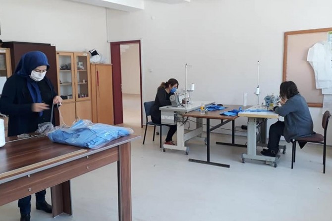 İlçe Milli Eğitim Müdürü Ercan Gültekin ise atölyede üretim öncesi hijyen ve yeterli sosyal mesafe düzenlenmesi başta olmak üzere gerekli koşulların oluşturulduğunu belirtti.