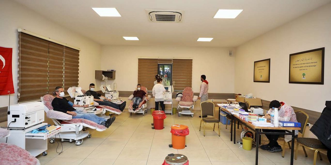 Daha önce Covid-19 rahatsızlığı geçiren ve iyileşen hastalar, immün plazma kan bağışında bulunmak için sosyal tesislere gelerek kan bağışında bulunuyorlar.