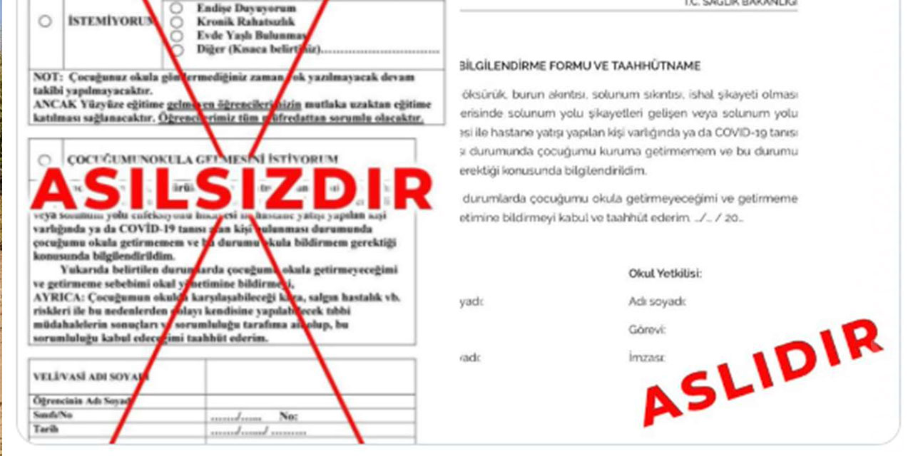 Milli Eğitim Bakanlığı, "Çocuğunu okula gönderme, göndermeme veli bilgilendirme izin ve taahhütname dilekçesi" adı altında dolaşıma sokulan belgenin asılsız olduğunu açıkladı.