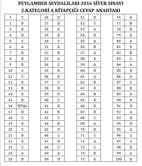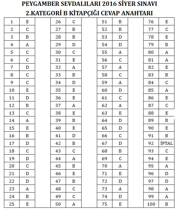 2016 kutlu doğum siyer sınavı cevap anahtarı peygamber sevdalıları