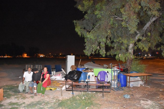 Anne Gurbet Sarıç ise yol kenarında bir tarlanın ortasında kalmak zorunda olduklarını vurgularken, “Sıcak ya da soğuk demeden burada bir ağacın altında kalmak mecburiyetinde bırakıldık. Halimiz ortada ve yardım talep ediyoruz. Kadın başıma çocuğum ve kocamla birlikte dışarı atıldık. Çocuğum engelli, eşim ise yaşlı ve çalışamıyor. Allah’tan başka sığınacak yakınımız yok.” dedi.