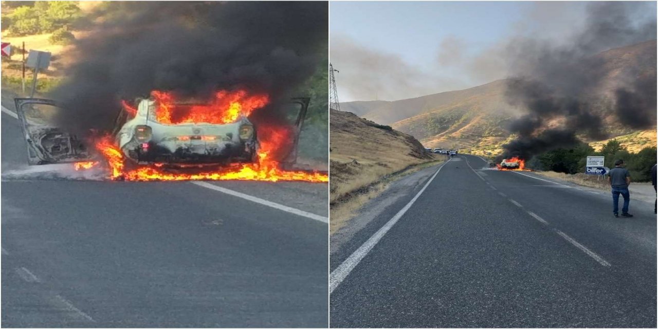 Alacakaya'da seyir halindeki otomobil cayır cayır yandı