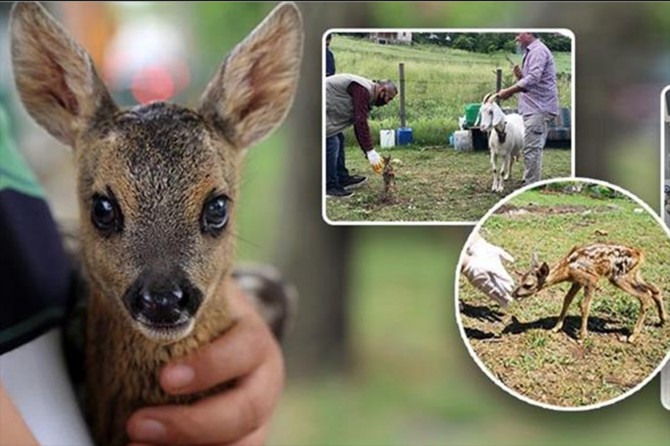 Bartın’da yavru karaca onu emziren keçiyi anne olarak benimsedi