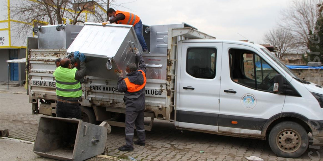 Bismil Belediyesi Temizlik İşleri Müdürlüğü ekipleri, çalışmalar kapsamında işlek caddelere 100 adet ayaklı çöp kutuları, Merkez ve kırsal mahallelerde ise 400 adet çöp konteyneri dağıtımı yapılıyor.
