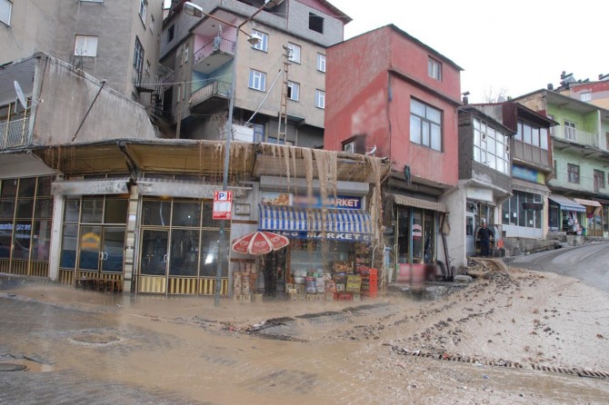 Bitlis'te kanalizasyon borusu patladı iş yerlerini su bastı
