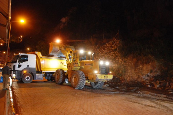 Bitlis'te karayoluna ait enkazı belediye kaldırdı