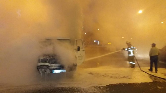Burhaniye'de park halindeki araç alev aldı