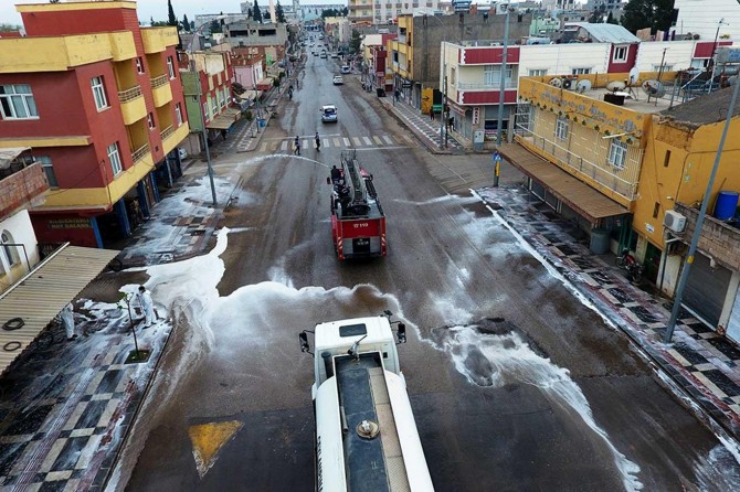Ceylanpınar'da karantinaya alınan mahalle ilaçlandı