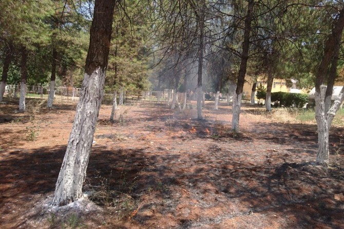 Şanlıurfa Hilvan'da okul bahçesinden geçen elektrik telleri yangına neden oldu