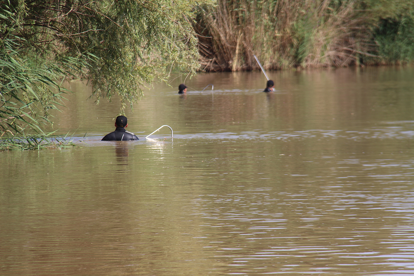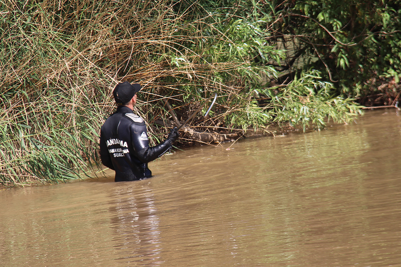 Dalgıçlar nehirde tarama yaparken, ekipler kıyı şeridinde de arama faaliyetlerini sürdürüyor.