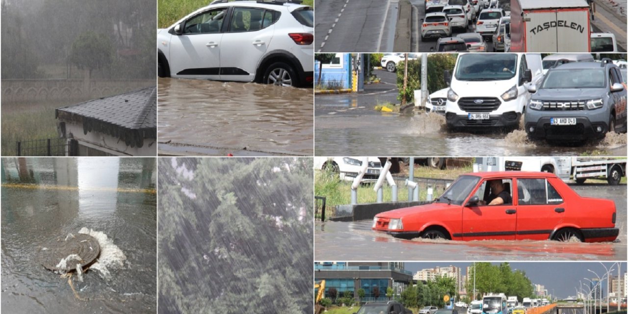 Diyarbakır'da fırtına ve sağanak yağış: Caddeler göle döndü ağaçlar devrildi