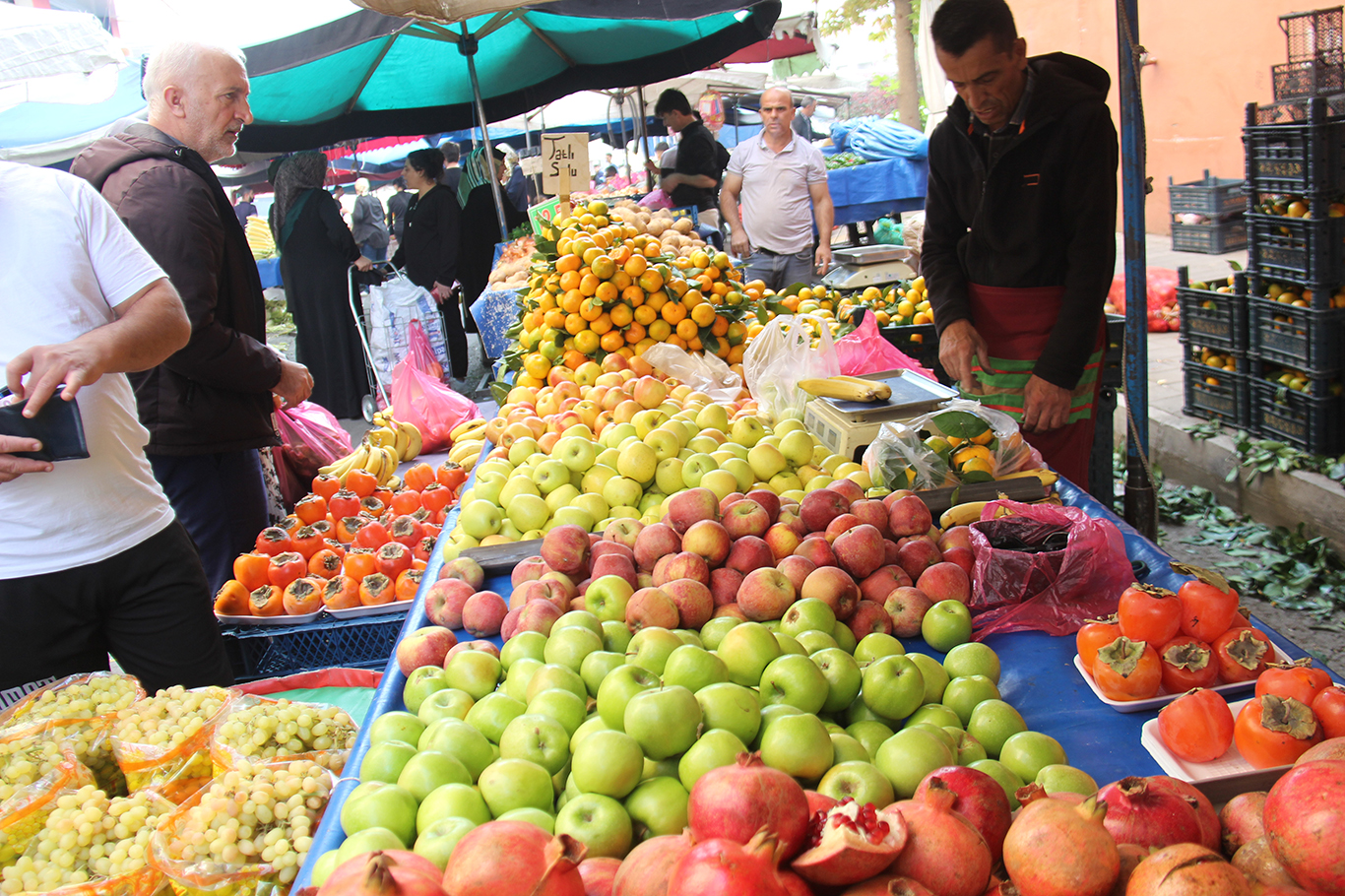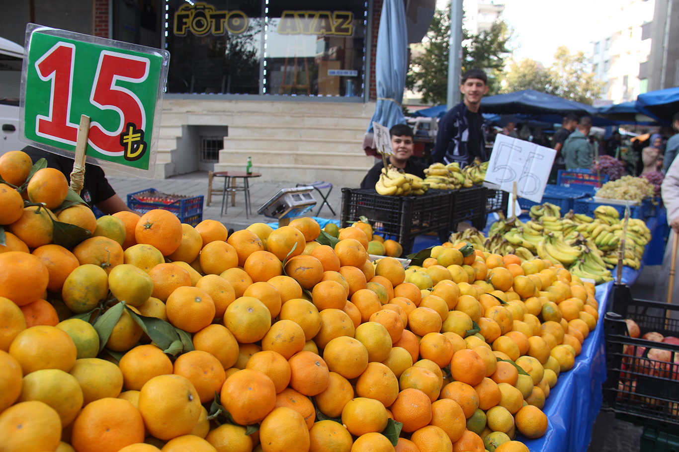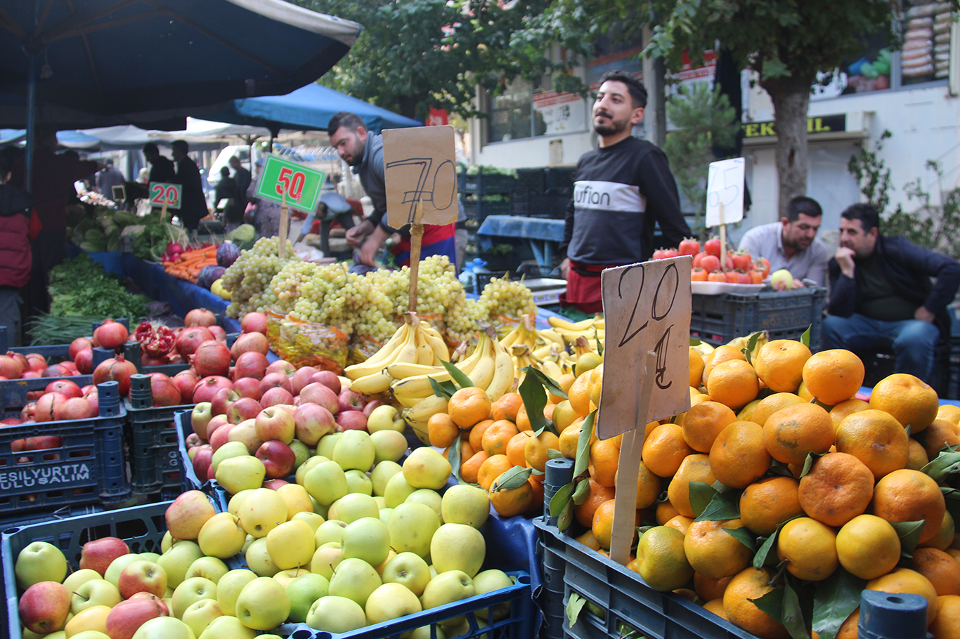 Pazarda meyve satan esnaf Nurettin Esmer, mandalina, nar ve elma gibi temel ürünleri tezgâha çıkardıklarını belirterek fiyatların yükselmesini enflasyon, mazot zamları ve vergi artışına bağladı. Esmer, "Şu an vergiler yüzde 2’den 18’e çıktı" dedi.