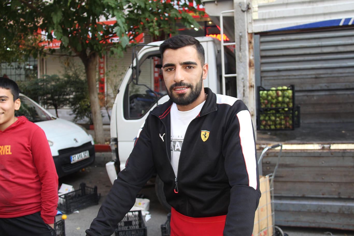 "Muz, kivi, armut, elma ve mandalina satıyoruz. Mandalina 15, armut 70, elma 50, kivi 40, muz ise 70 TL. Halde mandalina 8–10 TL arasında değişiyor."
