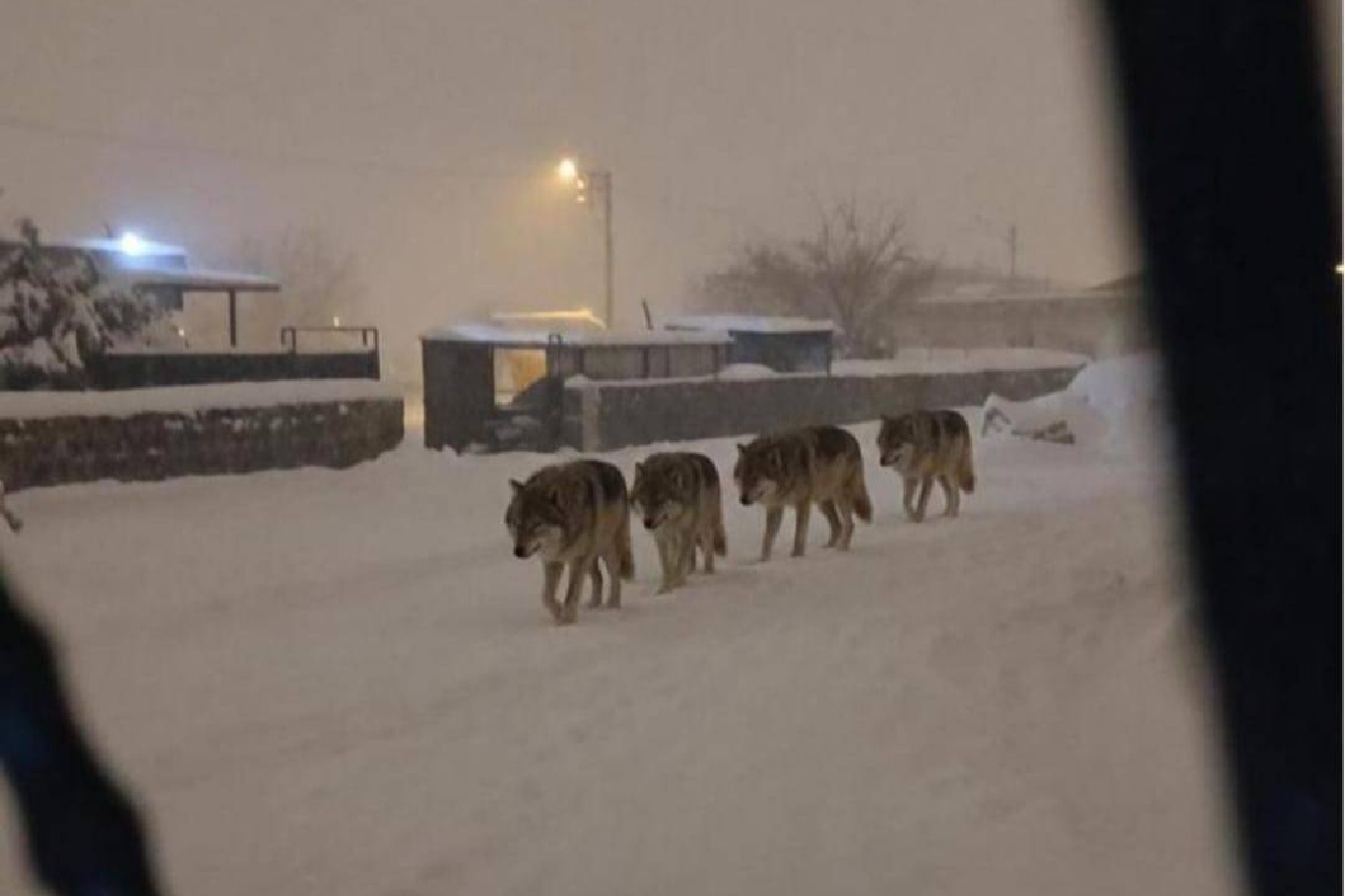 Diyarbakır’da aç kalan kurtlar şehir merkezine indi. Vatandaşlar, sürüyü cep telefonlarıyla görüntüledi.