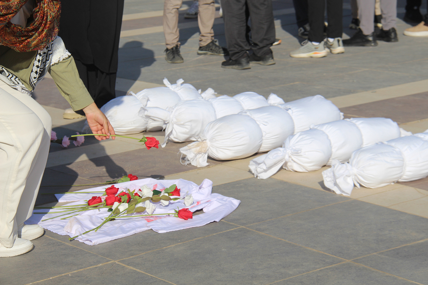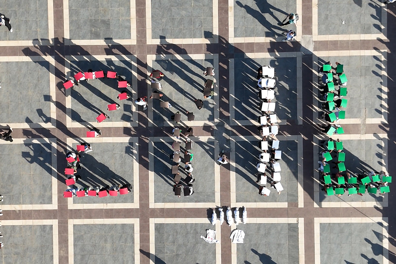 Kültür ve Kongre Merkezi önünde oluşturulan koreografik görüntünün ardından hazırlanan basın açıklamasını Dicle Üniversitesi Öğrenci Toplulukları adına Ali Sav okudu.