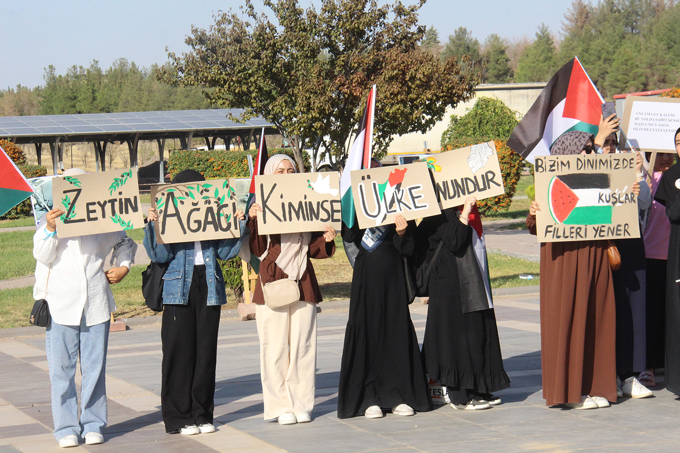 Diyarbakır Dicle Üniversitesi öğrencileri, Aksa Tufanı Operasyonunun 2'nci yıldönümünde Gazze'ye destek mesajı verdi.