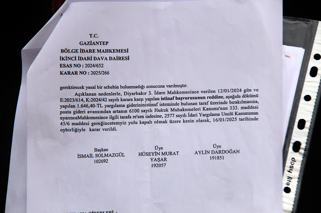 Satın alma ve yıkım kararıyla ilgili başlattığı hukuki süreçten söz eden Demir, "Ben burayı 2003'de 6 kişilik şahit huzurunda Hacı Mehmet Ekinci'den satın aldım. Tapusunu alamamışken Hacı Mehmet Ekinci'nin vefatı üzerine tapu tescil davası açtık. Keşif geldi. Keşife ilişkin lehimize verilen kararlarımız var. Belediye 2023'te buraya yıkma kararı aldı. Belediyenin yıkım karına binaen İdare Mahkemesine dava açtık. Mahkeme lehimize karar verdi. Belediyenin mahkeme kararına itirazı sonrası dava Bölge İdare Mahkemesine gitti. Mahkemeden de 'Belediye itiraz yolu kapalı olmak üzere oy birliğiyle karar verilmiştir' şeklinde de kararımız var." dedi.