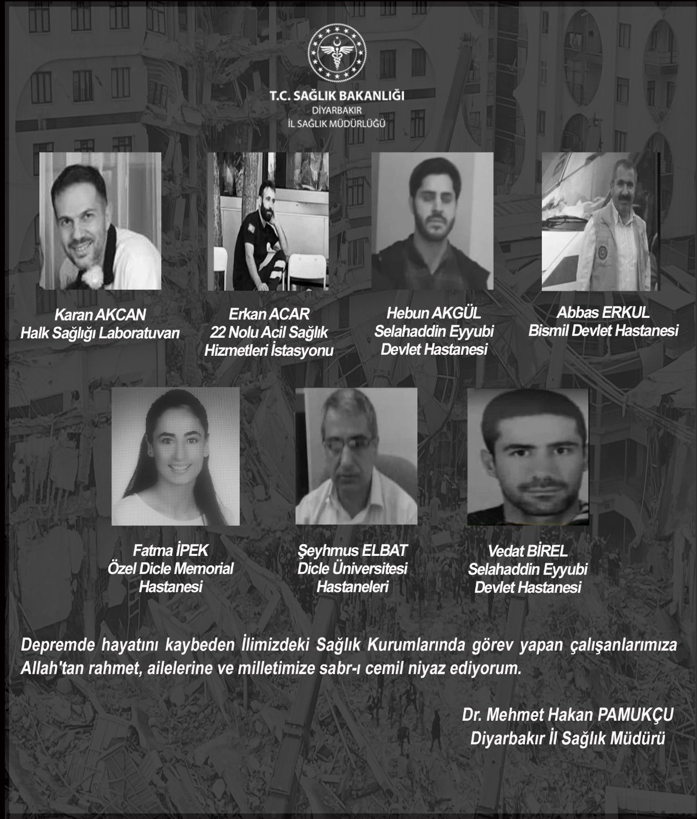 İl Sağlık Müdürü Dr. Mehmet Hakan Pamukçu, Diyarbakır'daki depremde 7 sağlık çalışanın hayatını kaybettiğini açıkladı.