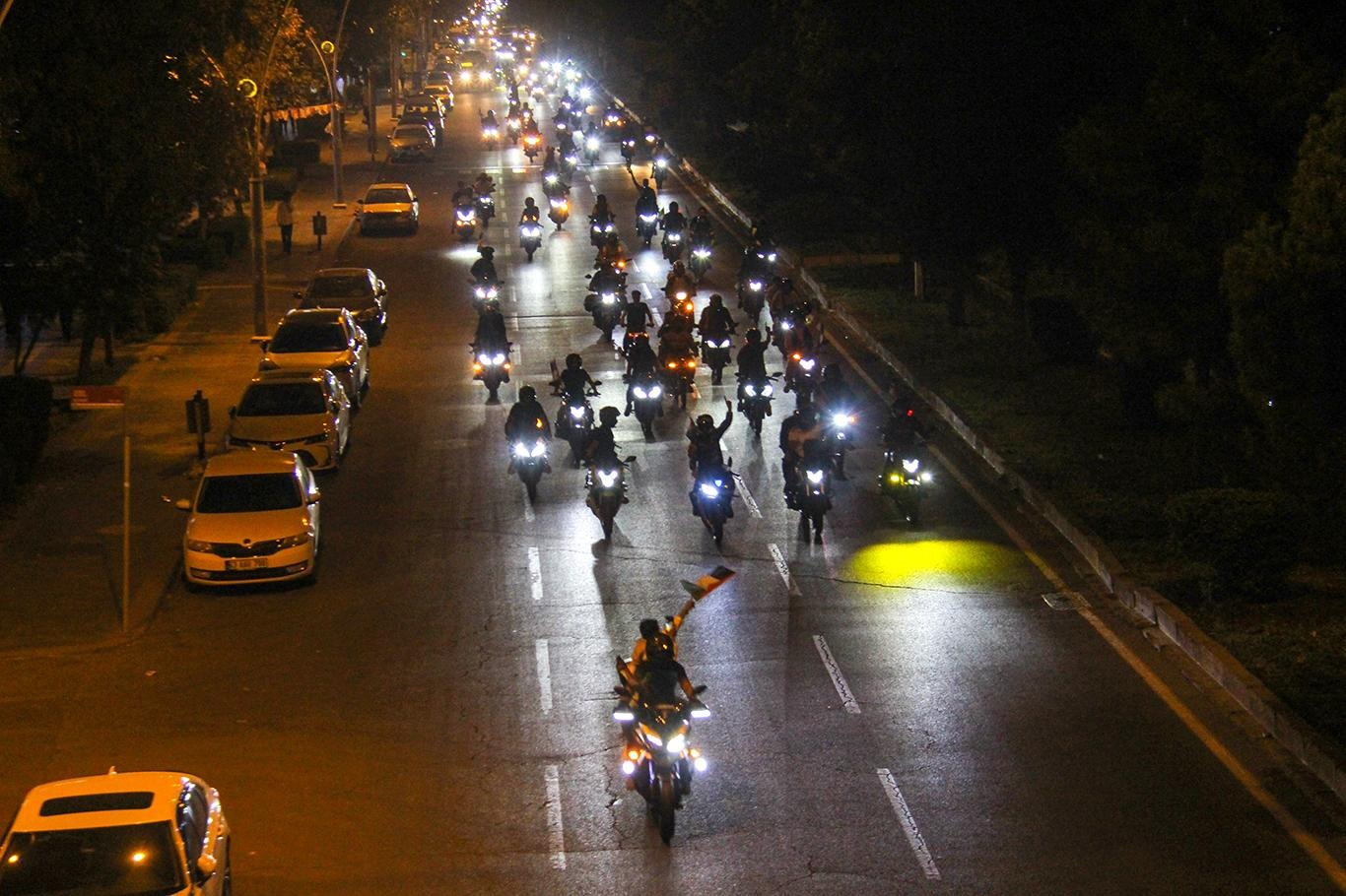 Otomobil sürücüleri motorculara korna sesleriyle destek verdi.