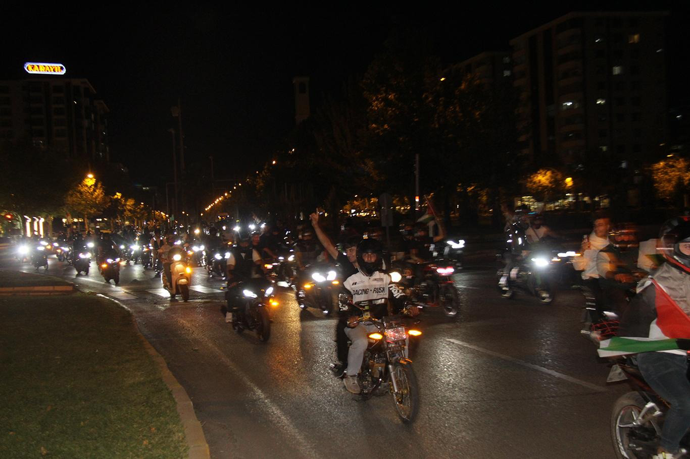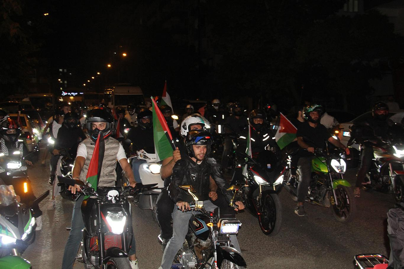 Motorlarına Filistin ve tevhid bayrakları asan katılımcılar, ilk olarak Kayapınar ilçesinde bulunan Gaziler Caddesi üzerinde toplandı.