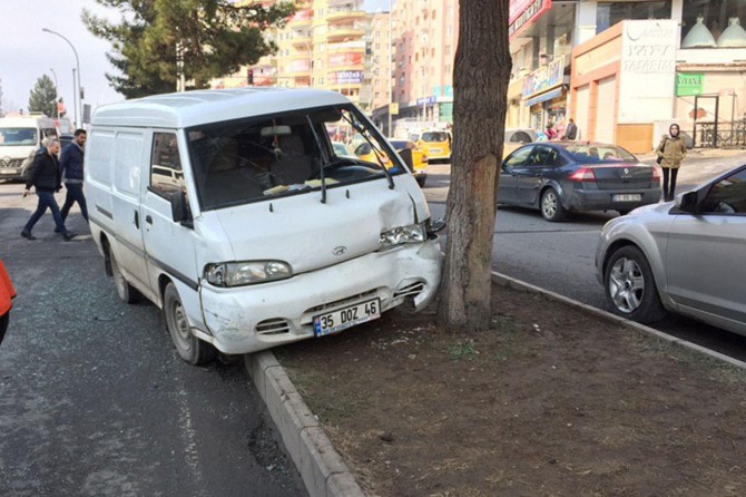 Edinilen bilgilere göre; Bağlar İlçesi Turgut Özal Bulvarı üzerinde meydana gelen kazada, henüz ismi belirlenmeyen 35 DOZ 46 plakalı hafif ticari araç sürücüsü hafif yaralandı.