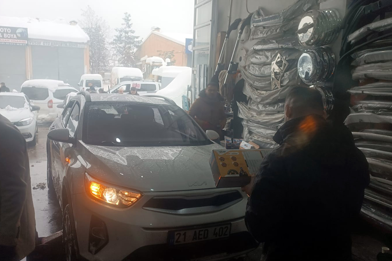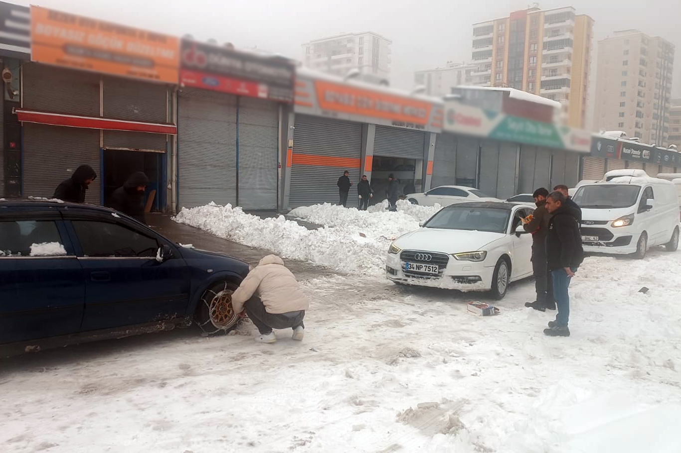 Diyarbakır'da yoğun kar yağışı sonrası lastikçilerde zincir kuyruğu oluştu