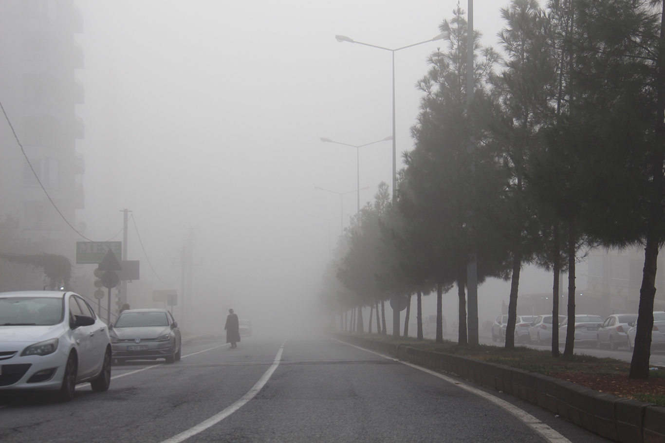 Diyarbakır’da sabah erken saatlerde etkili olan yoğun sis, kent genelinde görüş mesafesini yer yer 20 metreye kadar düşürdü.