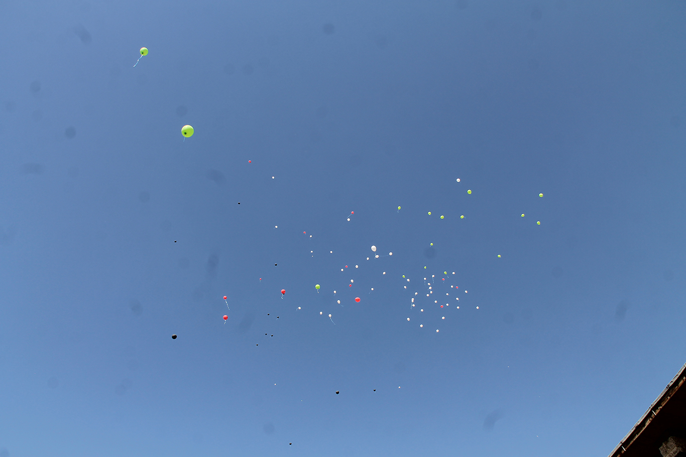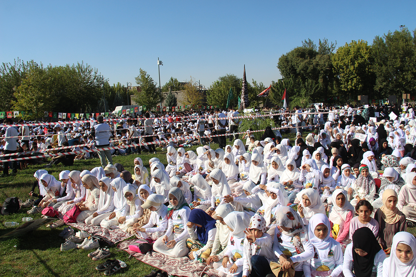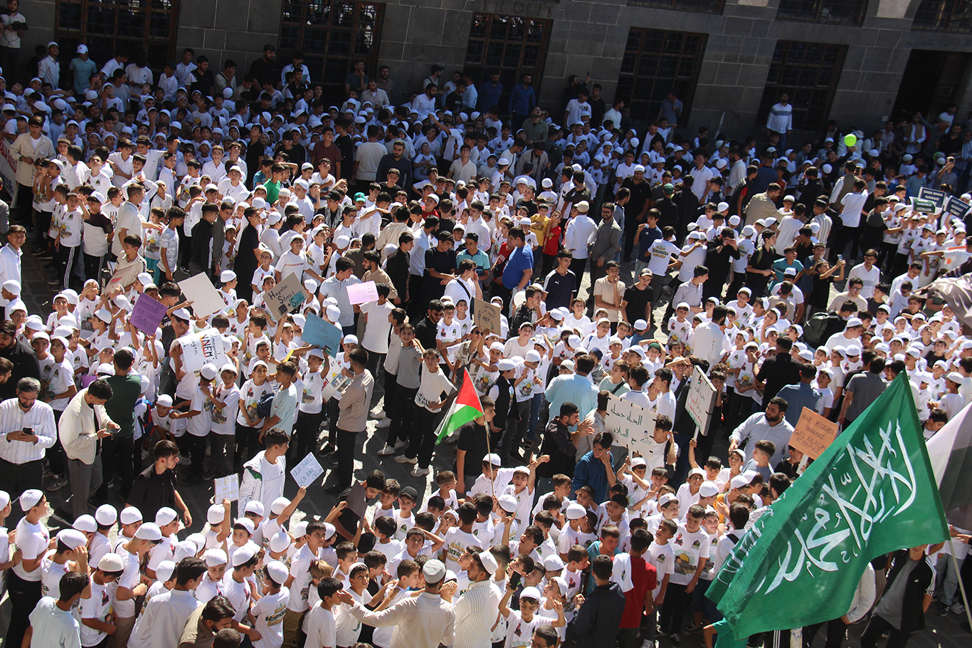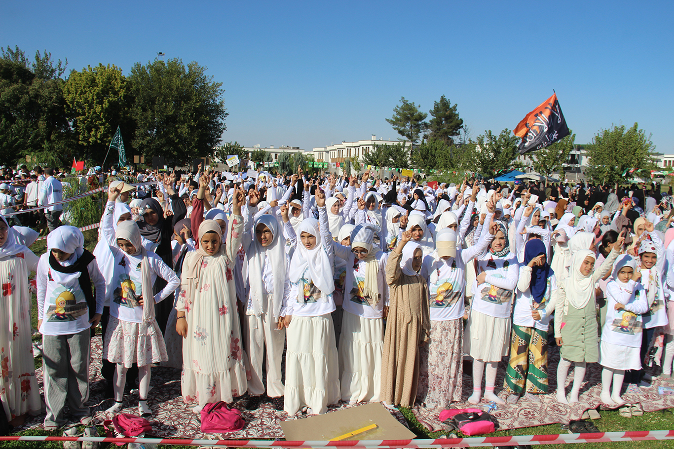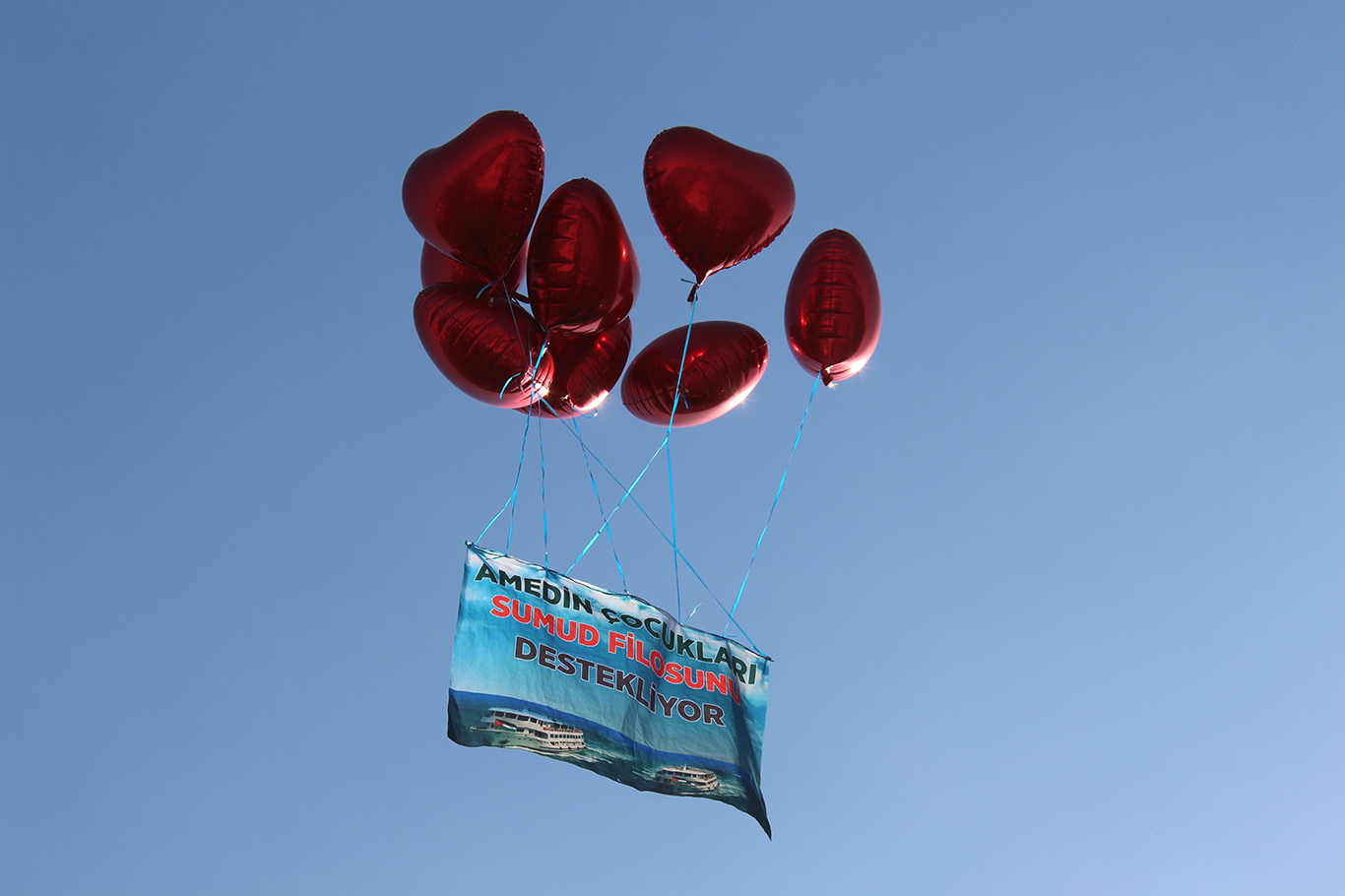 Namaz eğitimlerinin taçlandırıldığı bu günde Gazzeli akranlarını unutmayan miniklerin büyük kahramanı Ebu Ubeyde'nin posteri ile Gazze'deki ablukayı kırmak için yola çıkan küresel Sumud Filosu'na destek mesajı veren afişlerini balonlarla havalandırması görenleri duygulandı.