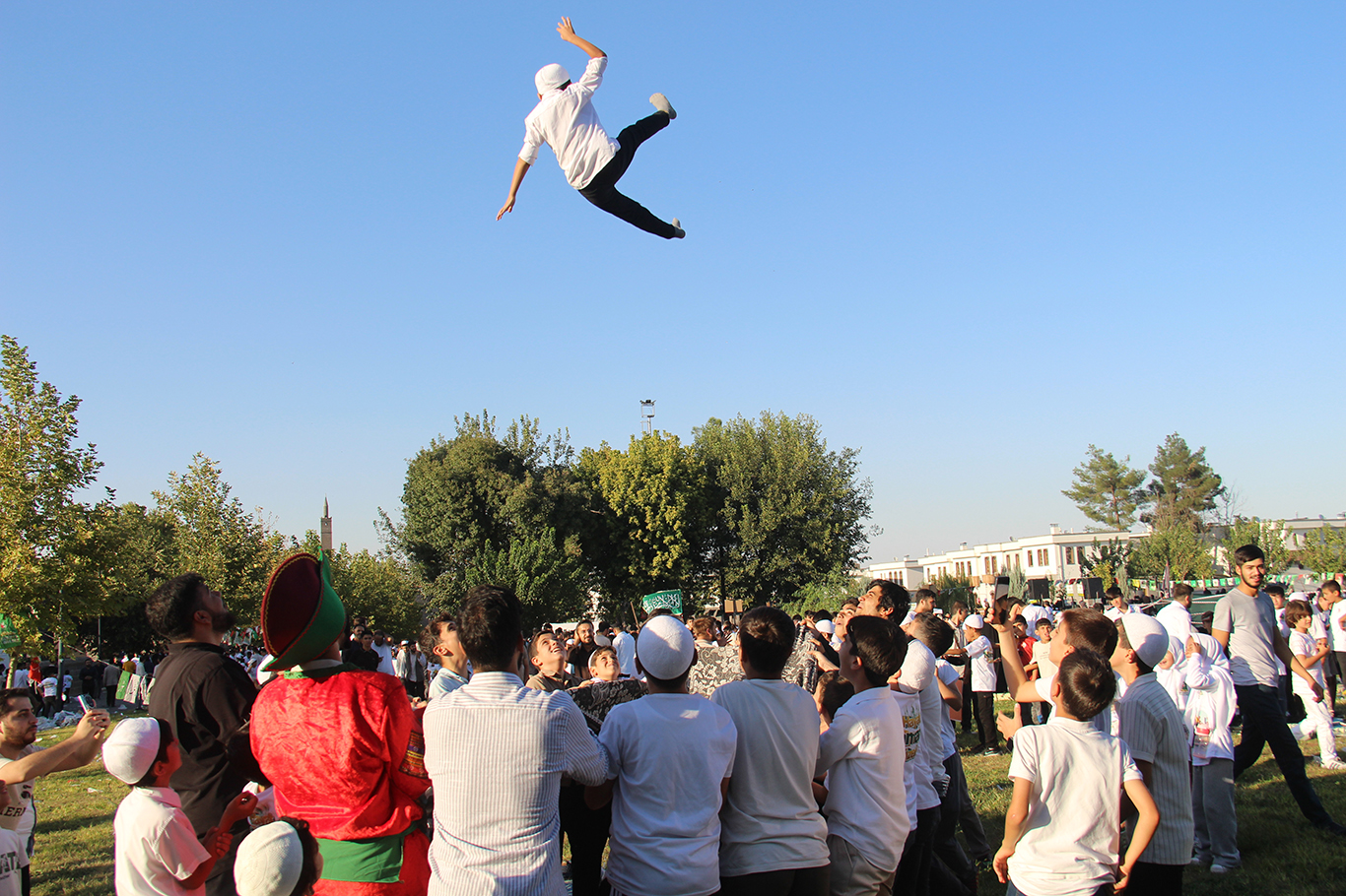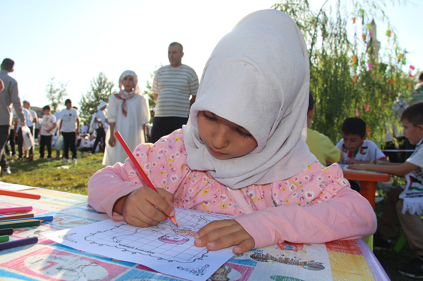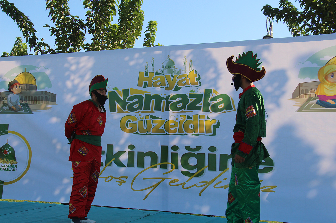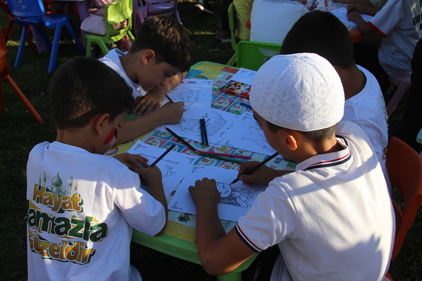 Program alanında çocukların hep beraber namaz kılması, Hacivat-Karagöz ile Keloğlan-Nasreddin Hoca canlandırmasındaki heyecanları; resim atölyesinden oyun parkurlarına, halattan gol atma yarışmalarına kadar bin bir türlü aktivitelerin yer aldığı alanda çocukların eğlenceli vakit geçirmesi renk cümbüşü oluşturdu.
