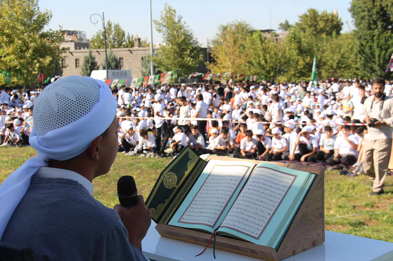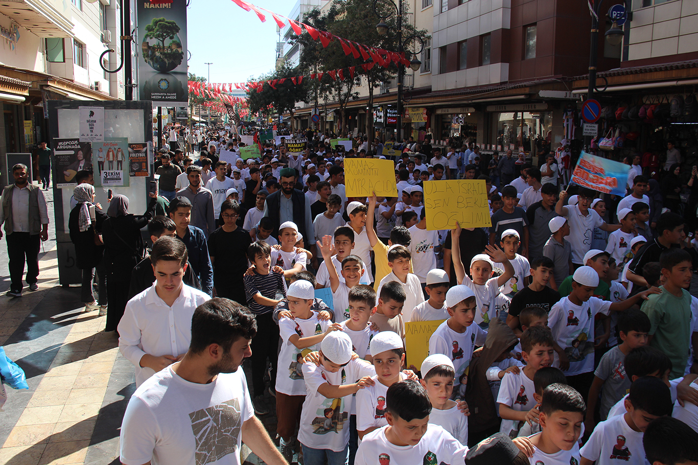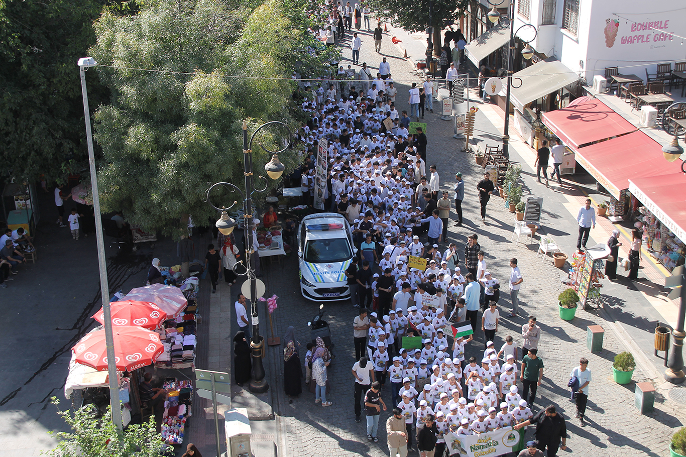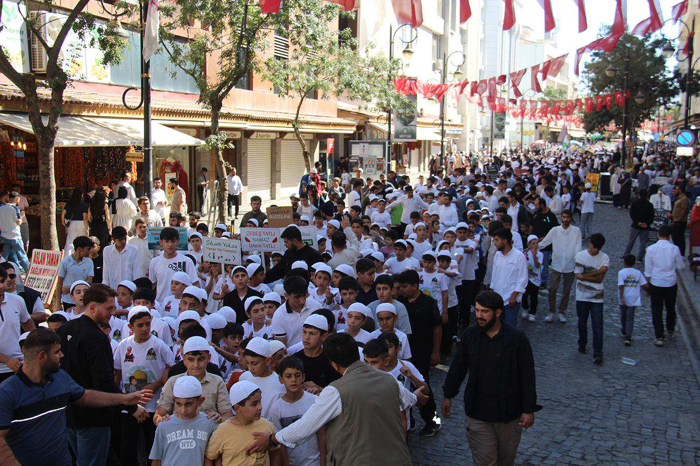 Merkez Sur İlçesi tarihi Ulu Camiinde toplanan binlerce çocuk, gökyüzüne bıraktıkları balonlarının ardından tekbir ve sloganlar eşliğinde final etkinliğinin yapılacağı Kurşunlu Camii yerleşkesine doğru yürüyüşe geçti.