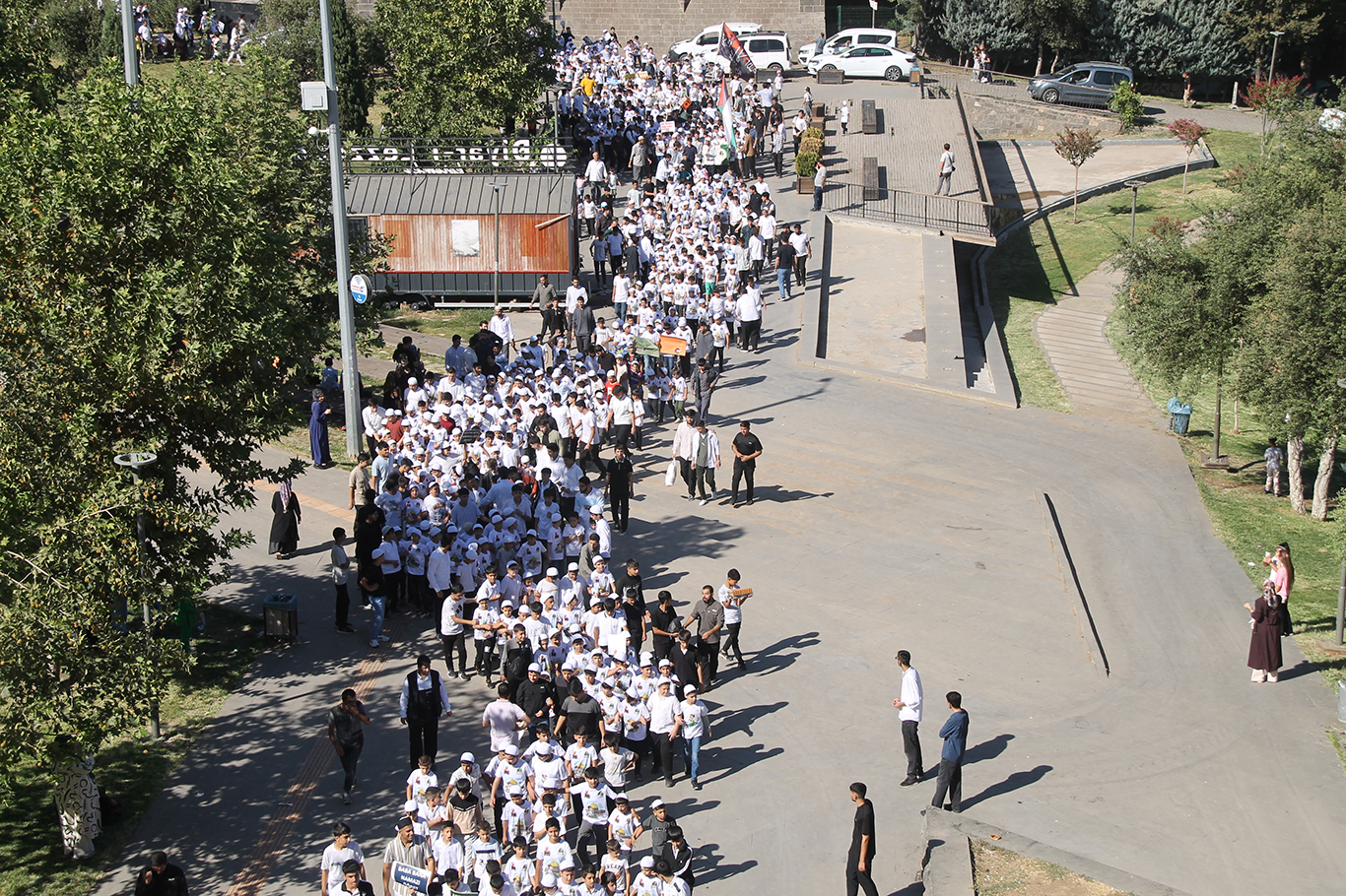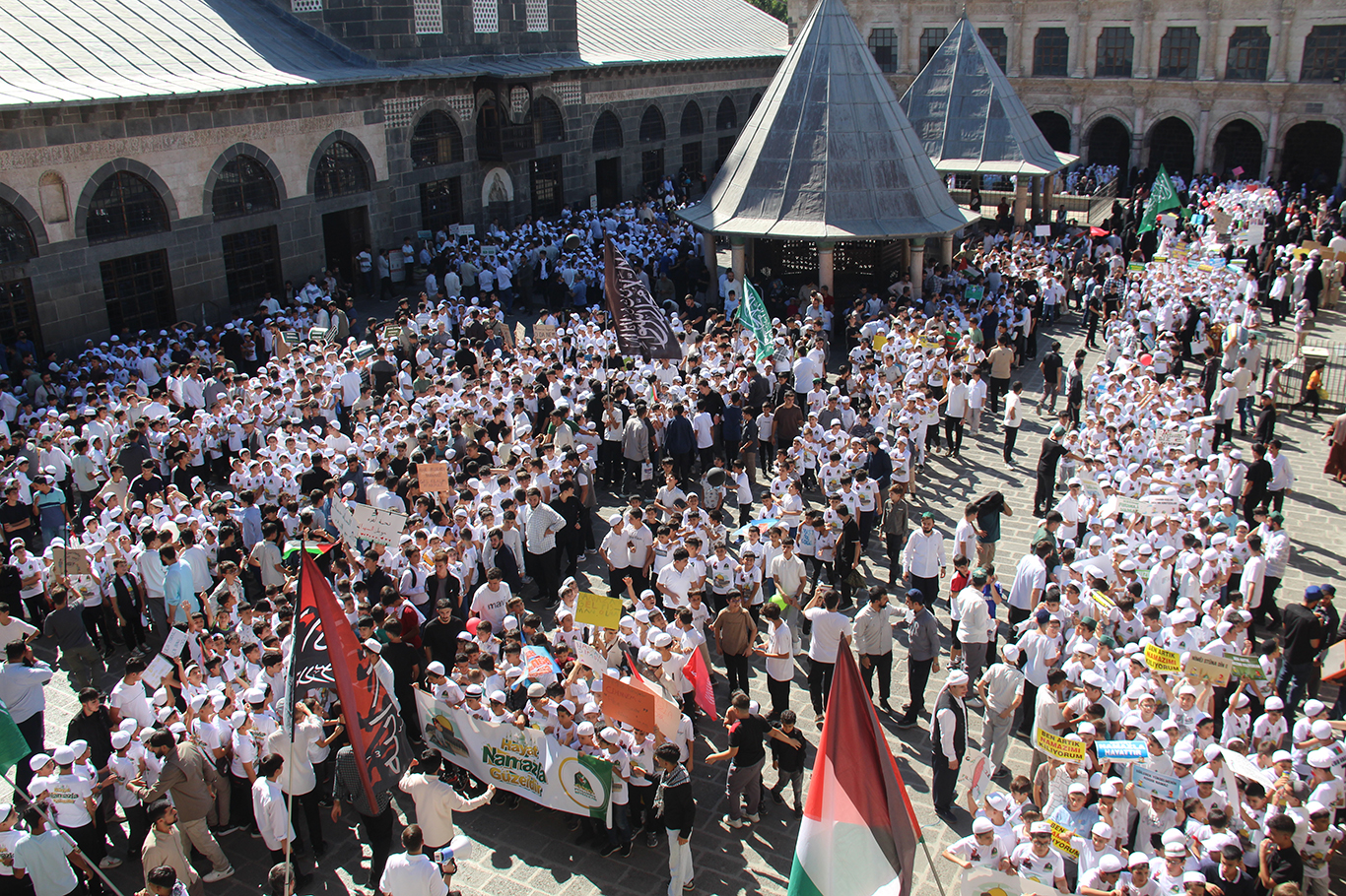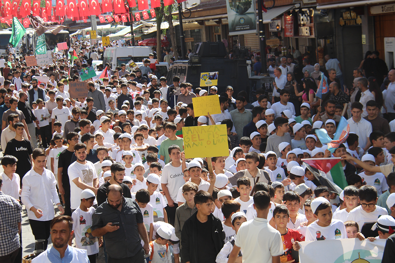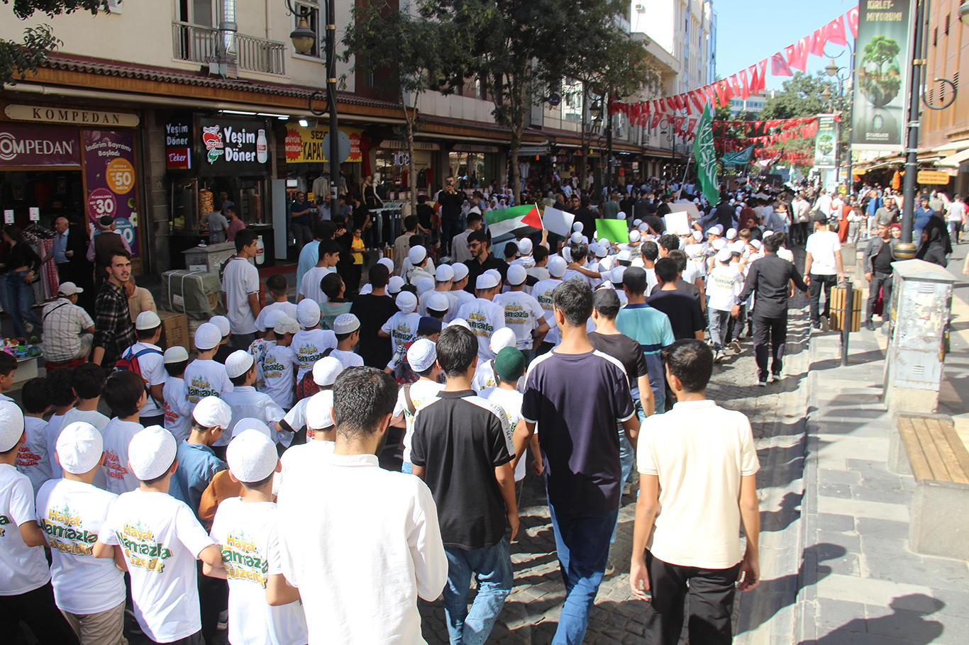 Merkez Sur İlçesi tarihi Ulu Camiinde toplanan binlerce çocuk, gökyüzüne bıraktıkları balonlarının ardından tekbir ve sloganlar eşliğinde final etkinliğinin yapılacağı Kurşunlu Camii yerleşkesine doğru yürüyüşe geçti.