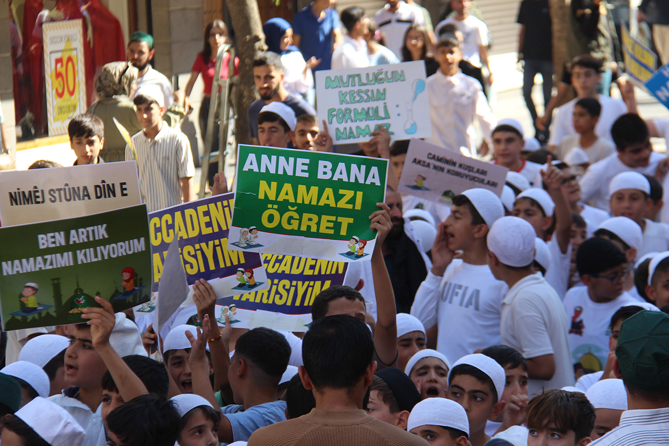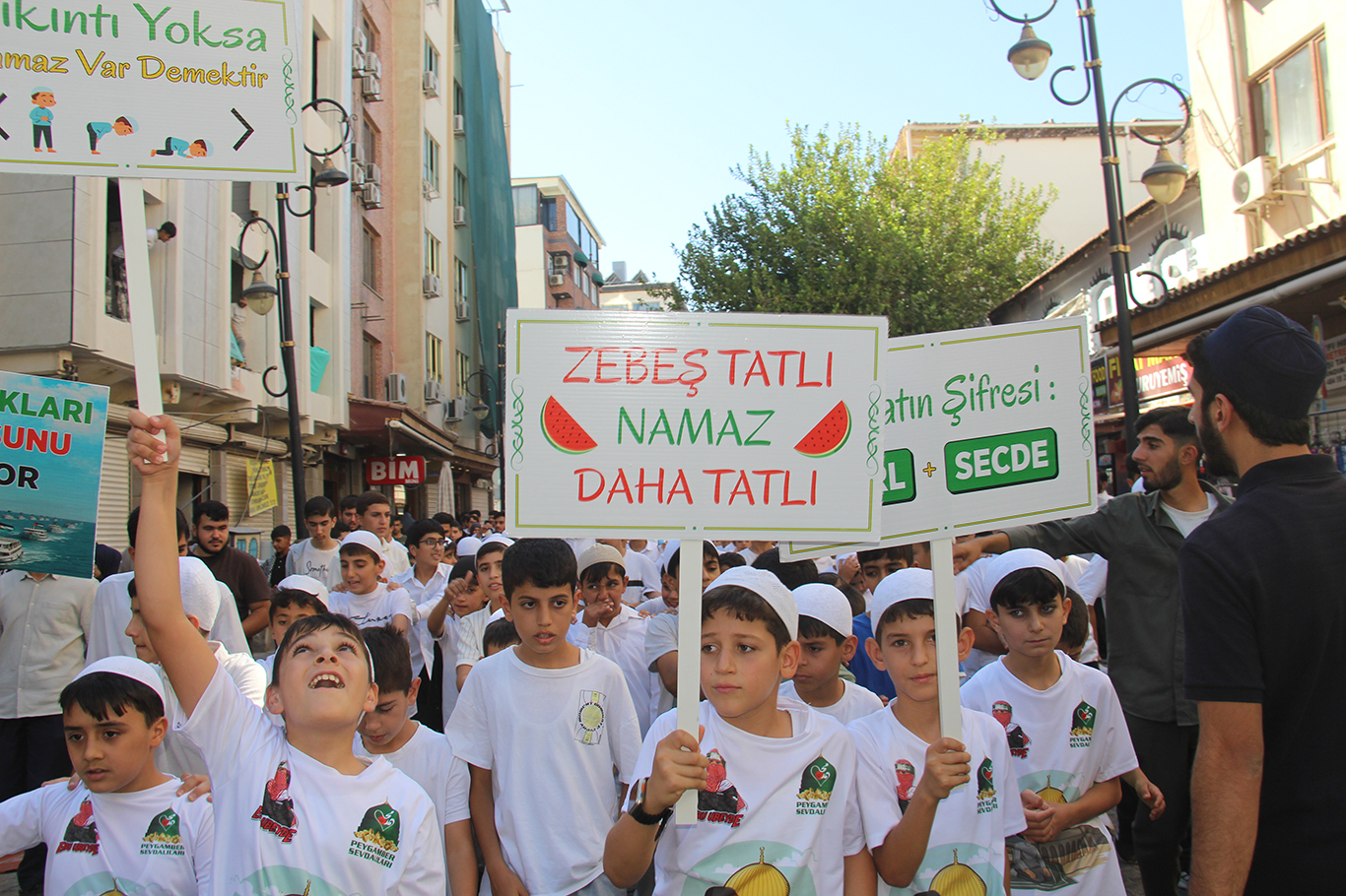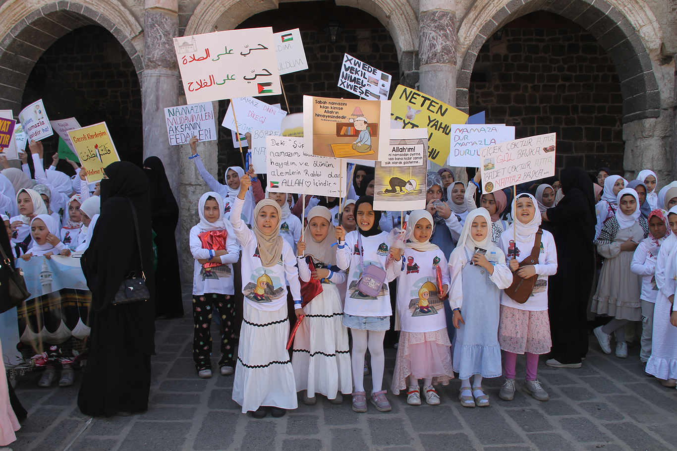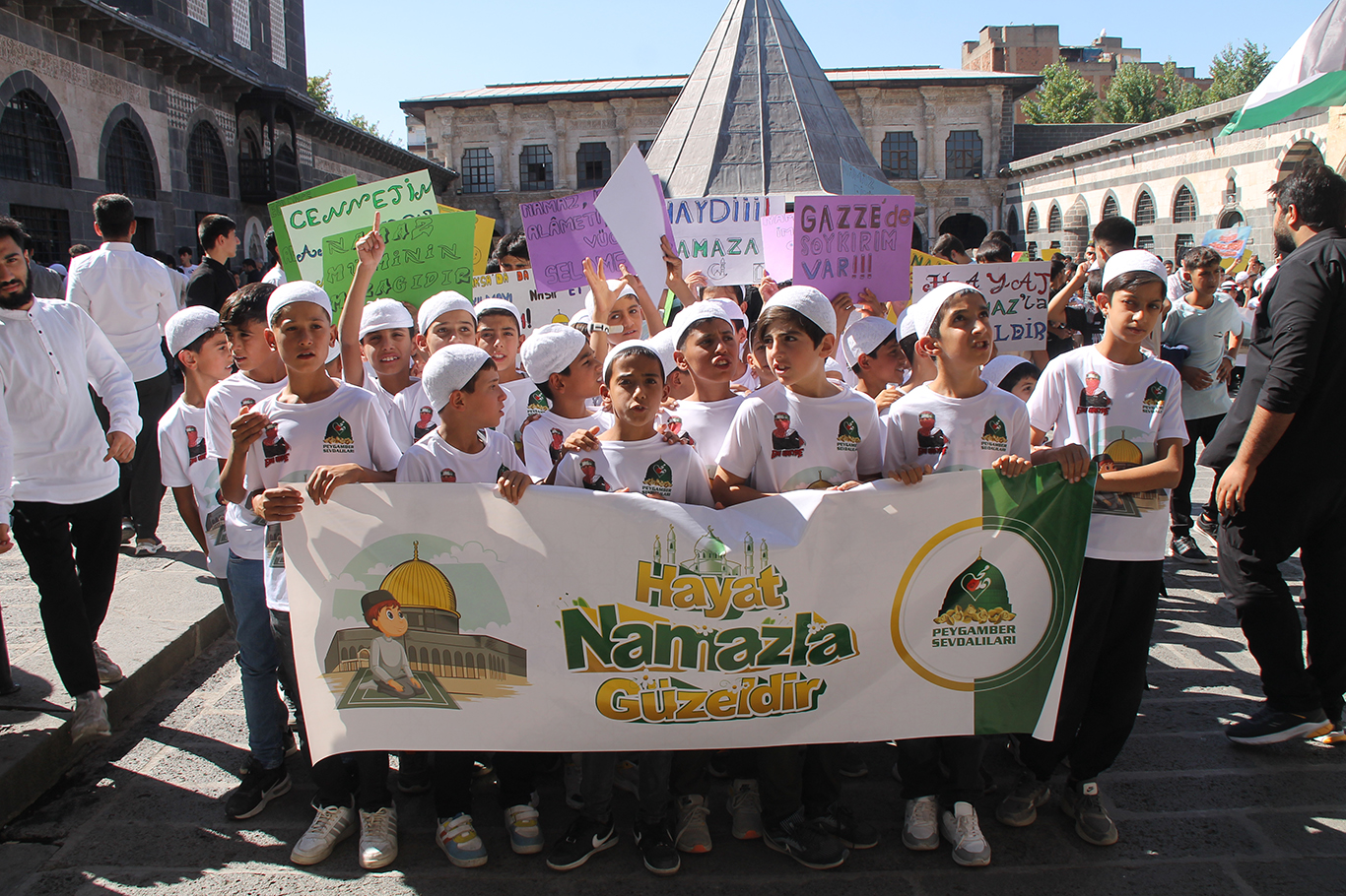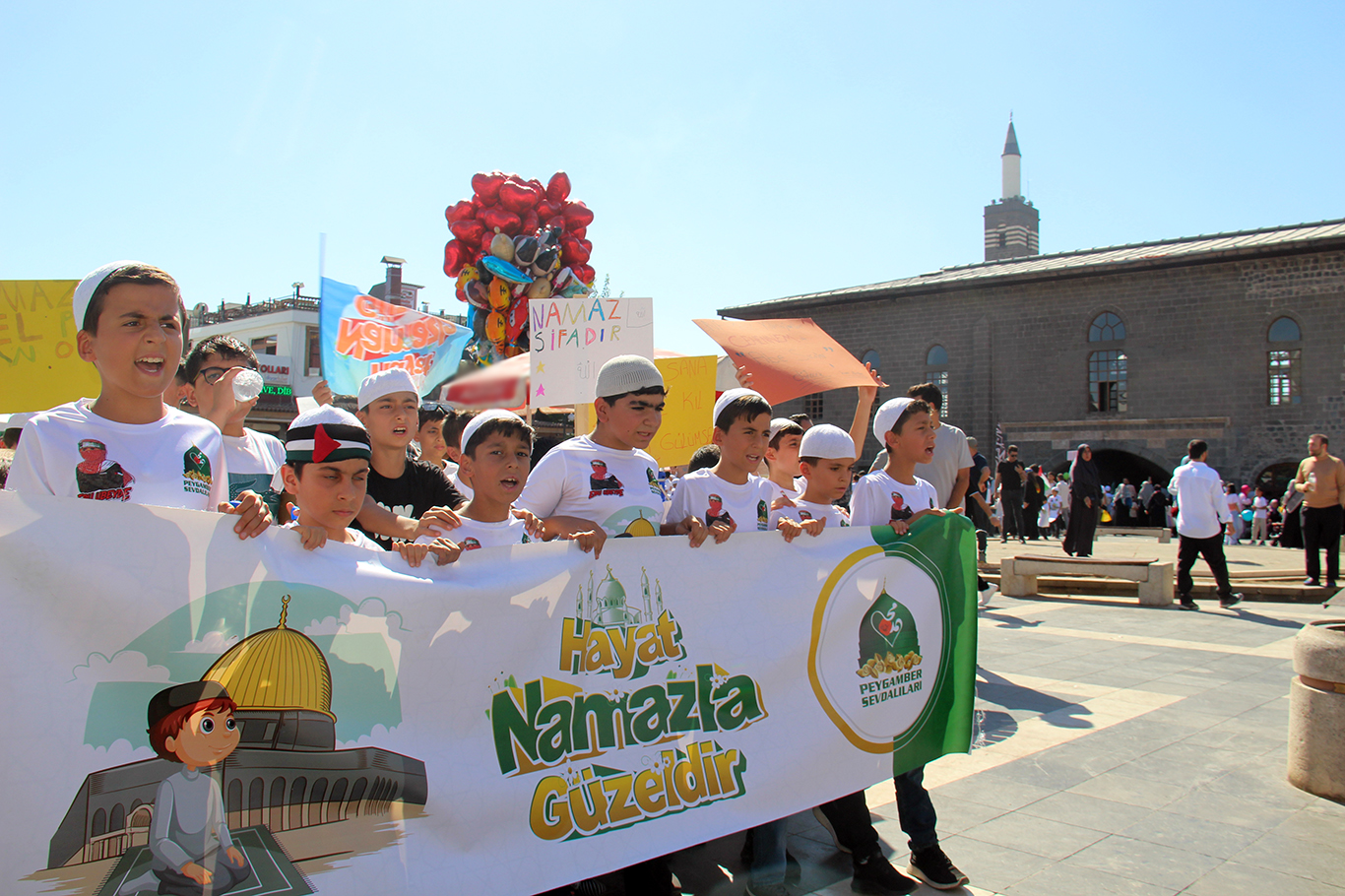Peygamber Sevdalıları Vakfı tarafından Diyarbakır'da düzenlenen "Hayat Namazla Güzeldir" etkinliğinde çocukların oluşturduğu birbirinden güzel kareler, gözleri kamaştırdı.