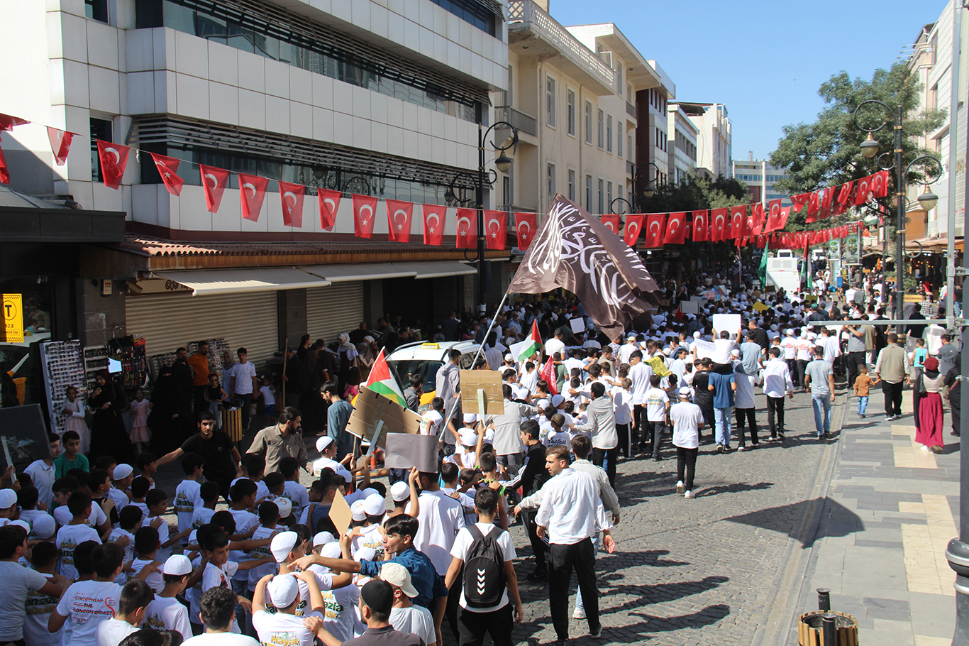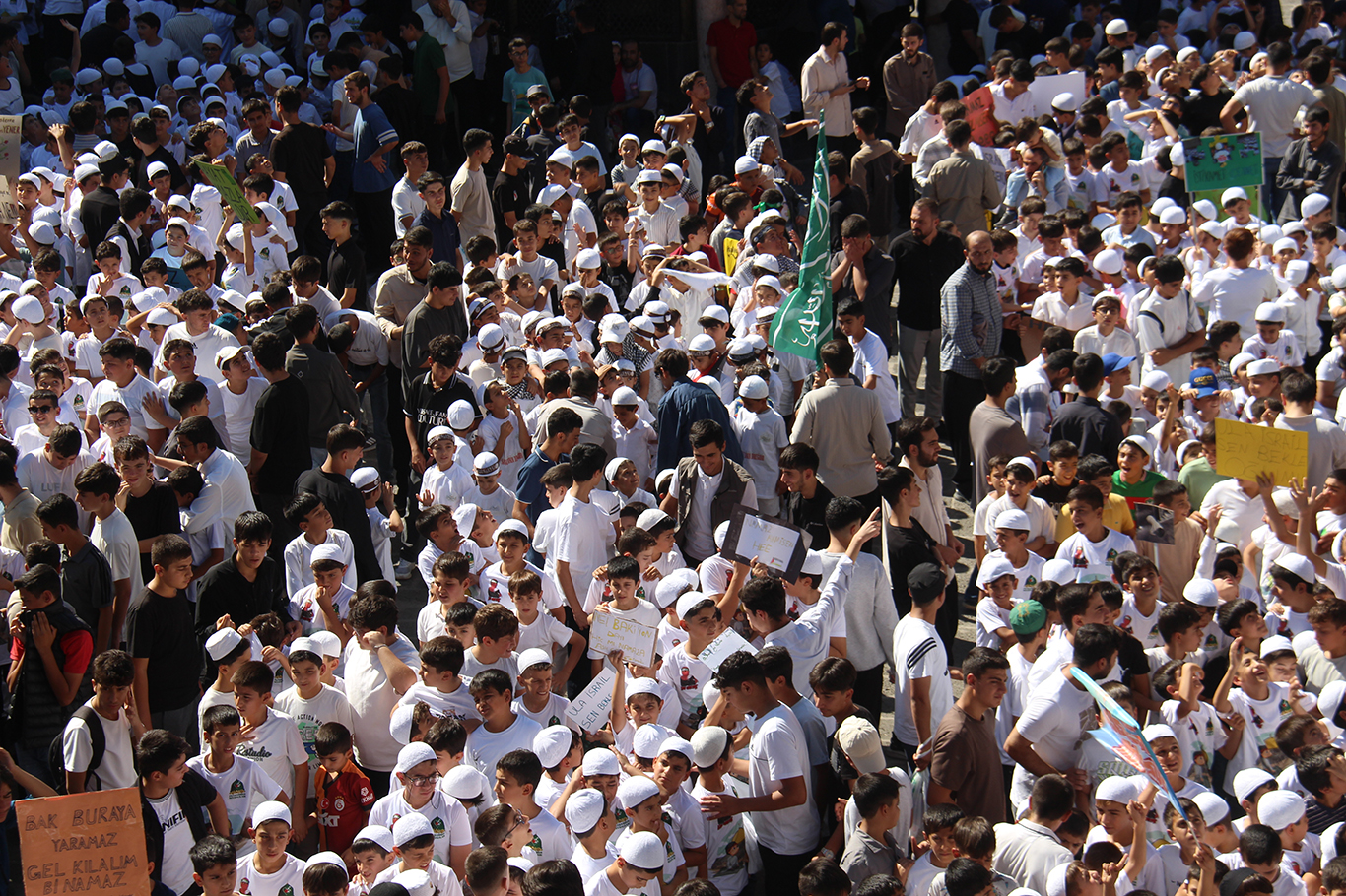 Yaşları 7 ile 12 arası değişen binlerce çocuğun ellerinde taşıdıkları döviz, bayrak ve pankartlar birbirinden güzel kareler oluşturdu.