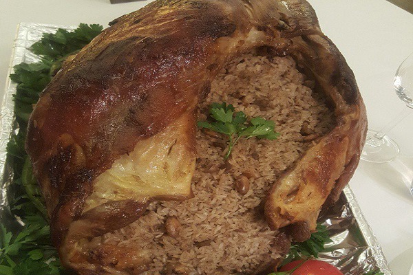Koyun kaburgası iç pilavla doldurulur, iç pilavında yenibahar, bol karabiber ve salça vardır.