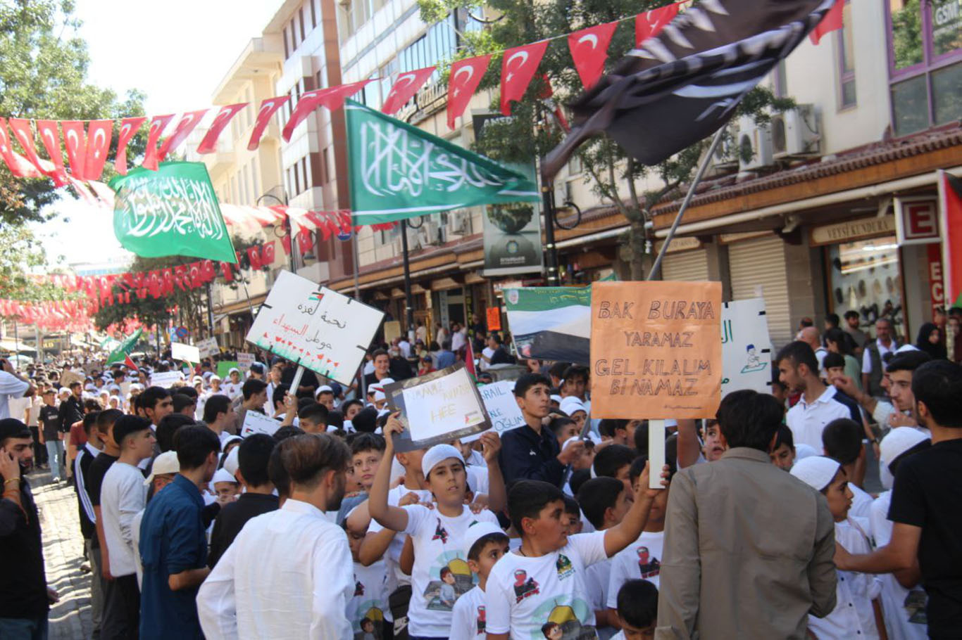 Etkinlik öncesinde tarihi Ulu Cami’de toplanan çocuklar, üzerinde “Hayat Namazla Güzeldir” yazılı tişörtlerle cami yerleşkesini doldurdu. Ellerindeki balonları gökyüzüne bırakan çocuklar, böylece Gazze’deki ablukayı kırmak için yola çıkan Küresel Sumud Filosu’na destek mesajı göndermiş oldu.