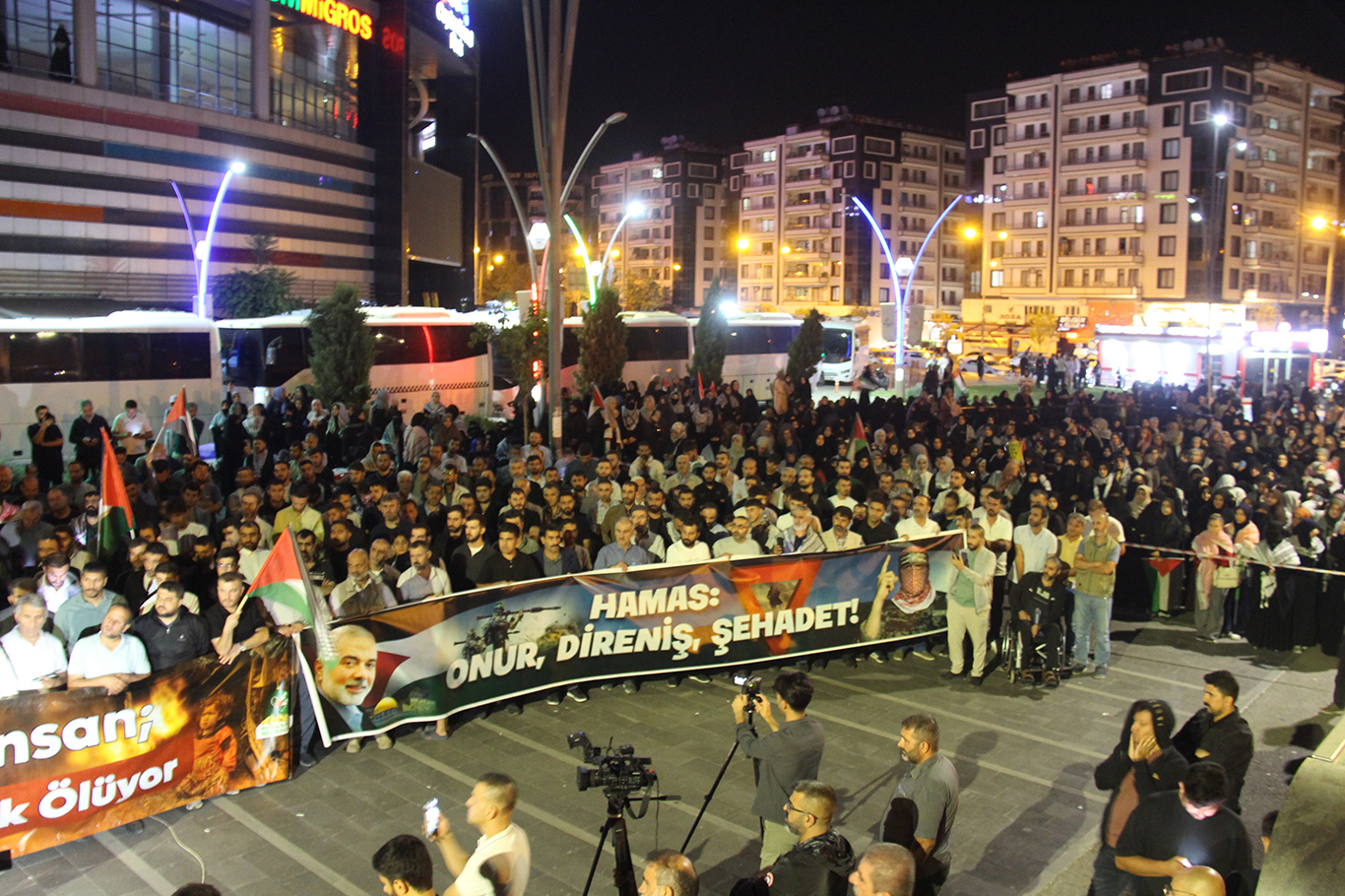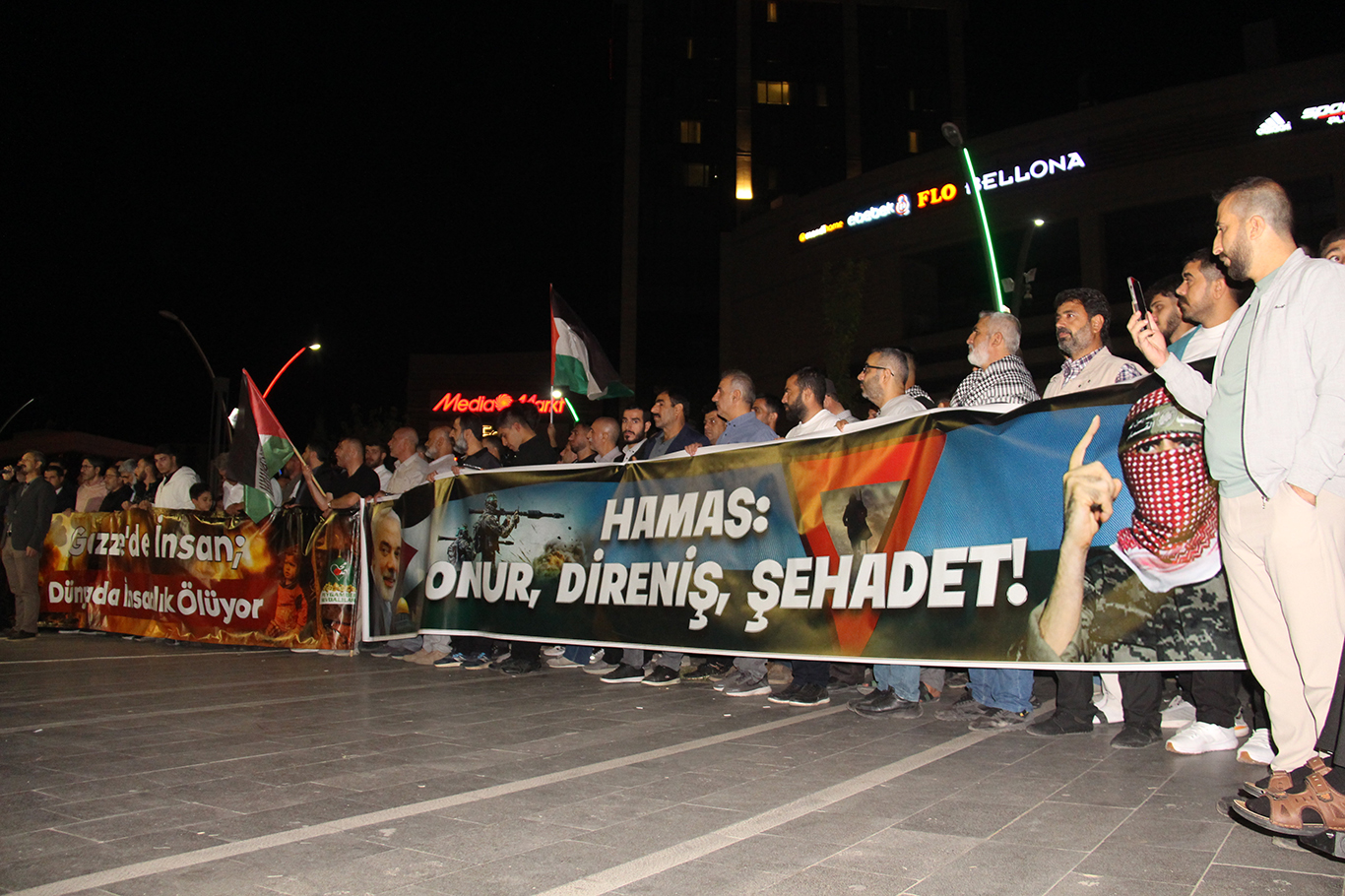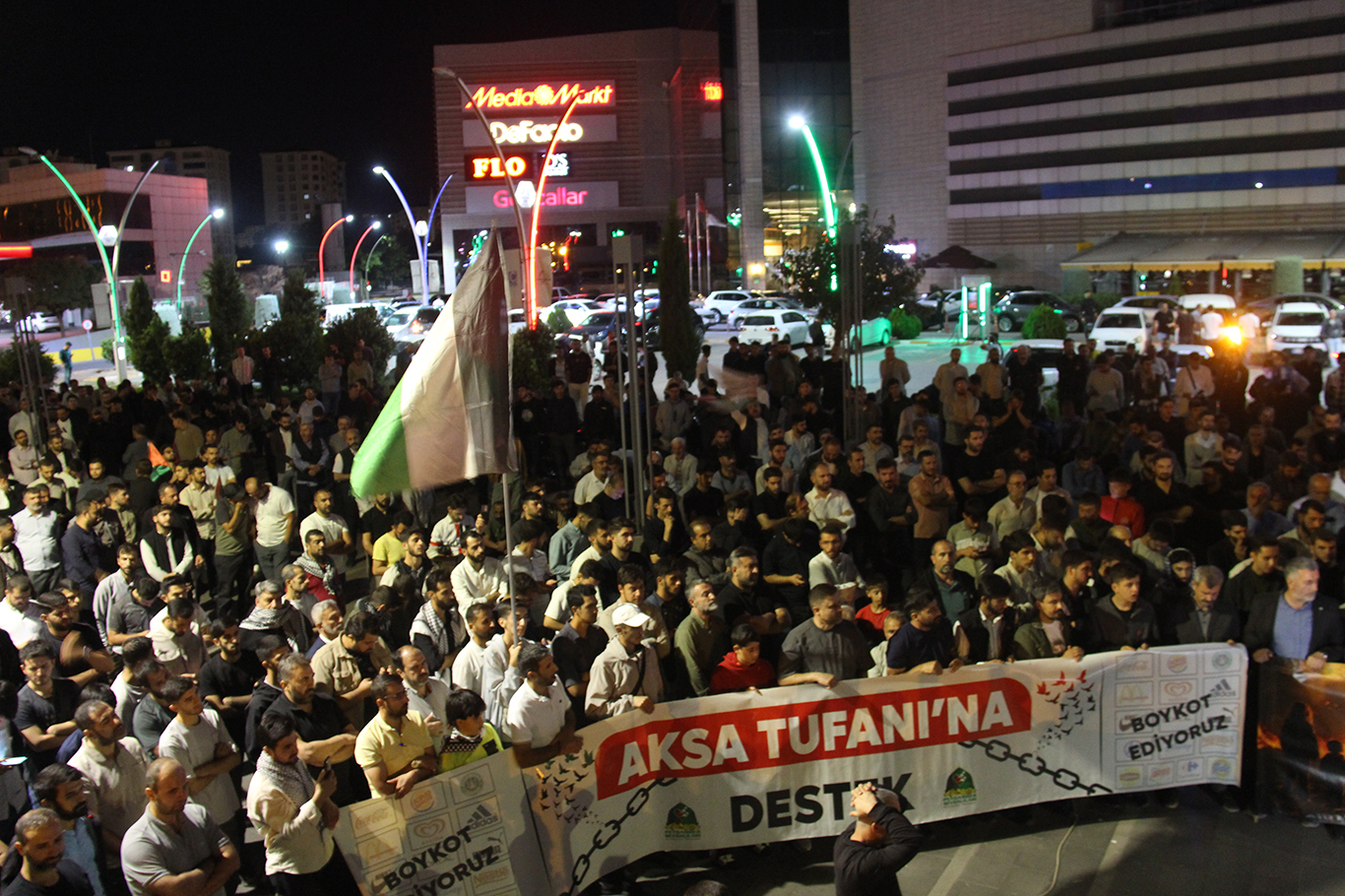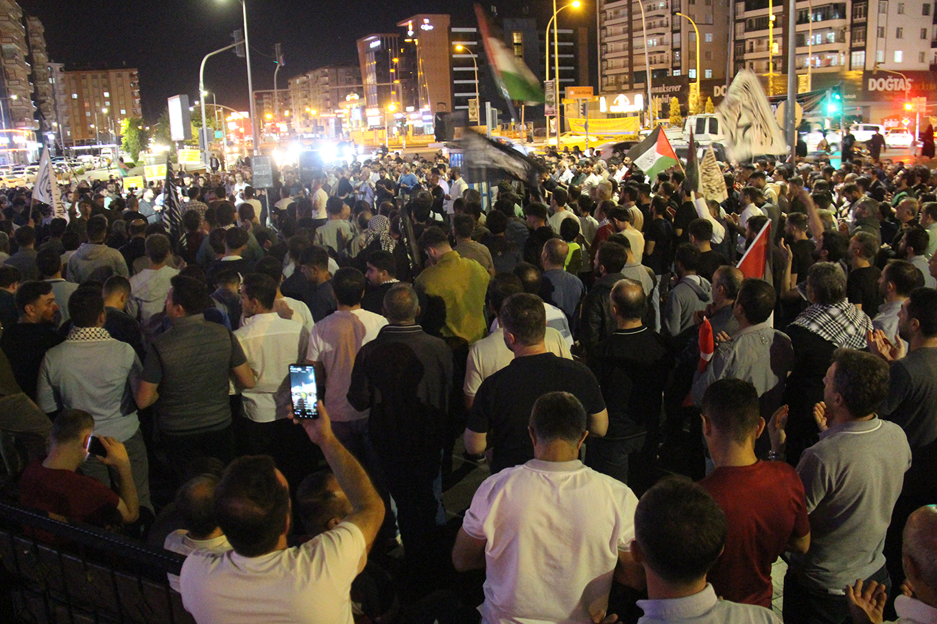 Gazze'deki ablukayı kırmak için yola çıkan Sumud Filosu'na işgal rejimi tarafından yapılan saldırıları protesto etmek için gece vakti meydanlara inen Diyarbakırlılar, yetkilileri filoya sahip çıkmaya davet etti.