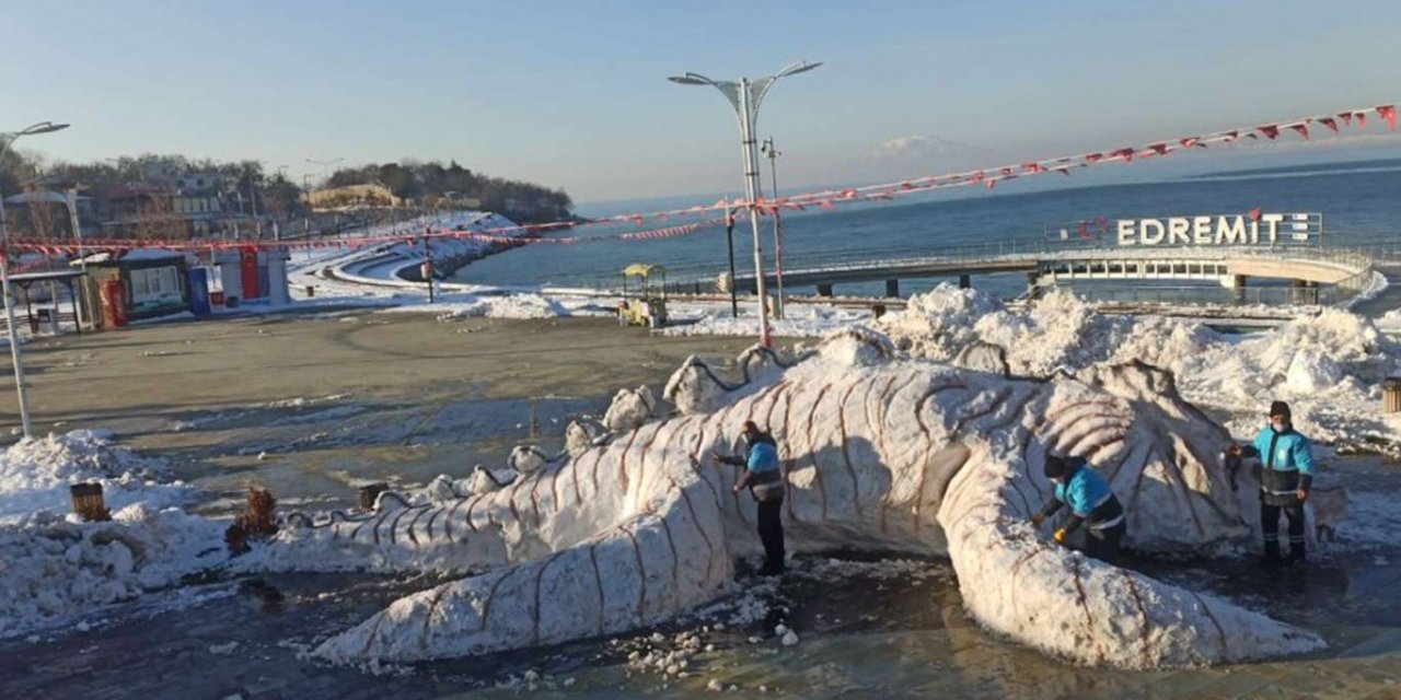 Van Gölü kıyısında kardan “Van Gölü Canavarı” yaptılar