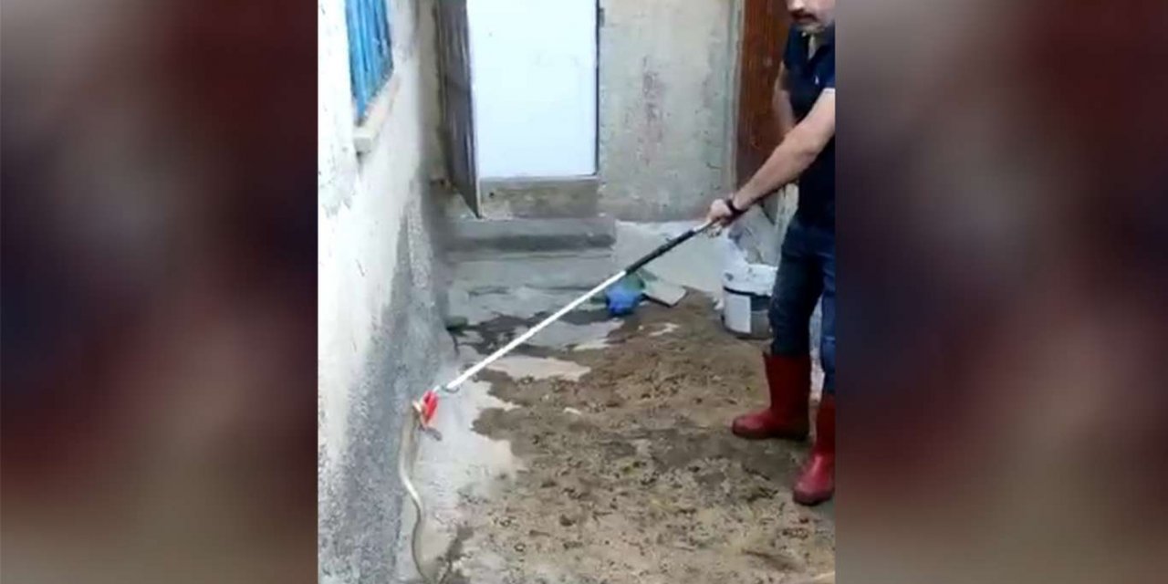 Eve giren yılanı itfaiye ekipleri çıkardı