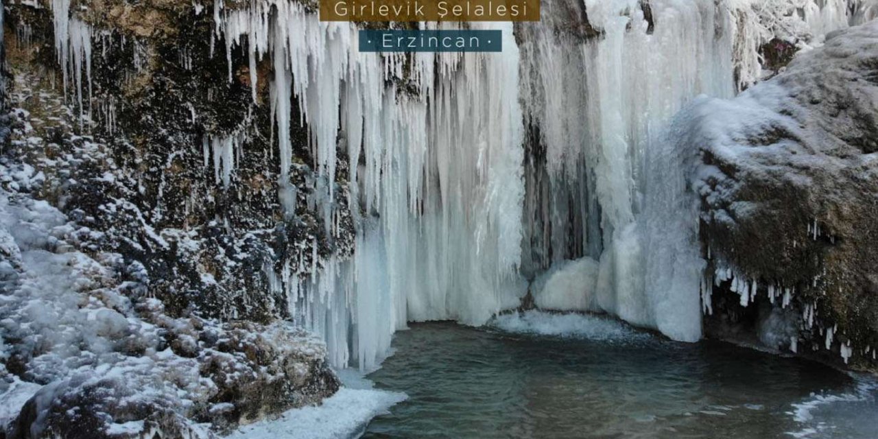 Buz tutan Girlevik Şelalesi'nde kartpostalık manzara oluştu