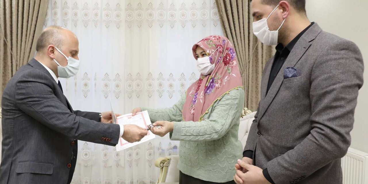 Evini yangında kaybeden aileye yeni evlerinin anahtarı teslim edildi