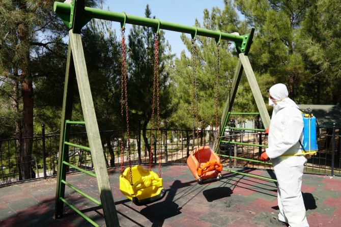 Gaziantep'te parklar, sosyal tesisler ve camiler Coronavirüs nedeniyle dezenfekte ediliyor