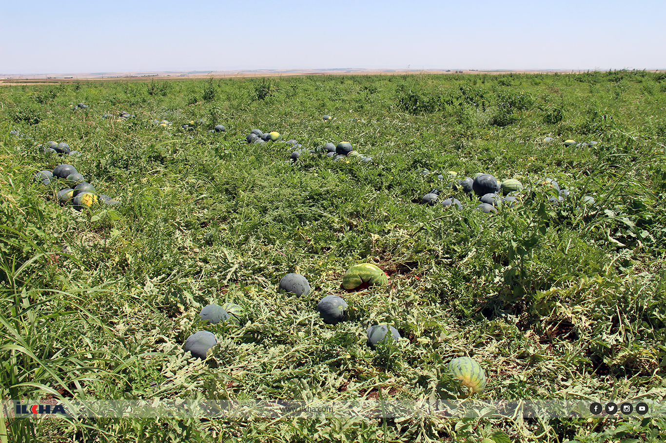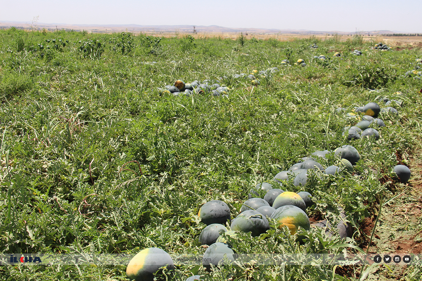 Çınar İlçemizde karpuz toplamaya gelen Suriyeli işçiler yevmiyelerini sağlamak için tarlada ter döküyor.
