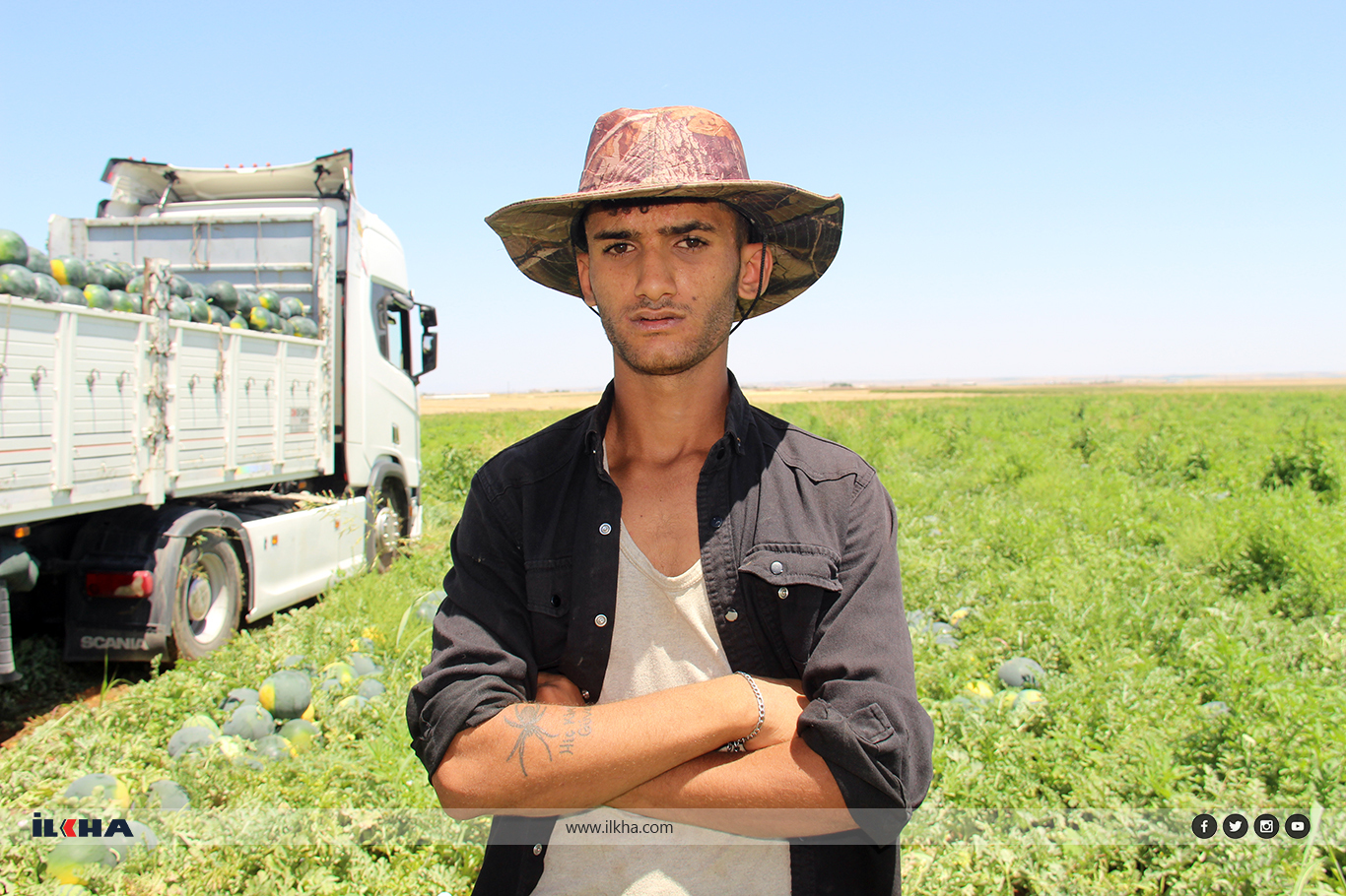 "Buraya gelip karpuz yüklemesi yapıyoruz. Saat 11.00 gibi yemeğimizi yiyoruz. Bu işte en çok zorlandığım taraf, havanın çok sıcak olması. Çok sıcak ve zor bir iş yapıyoruz. Her bir karpuz 9-10 kilo arasında geliyor ve biz bunu yerden tırda bulunan arkadaşımıza fırlatıyoruz. Geçen gün bir arkadaşımız sıcak nedeniyle fenalaşıp hastaneye kaldırıldı."