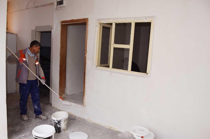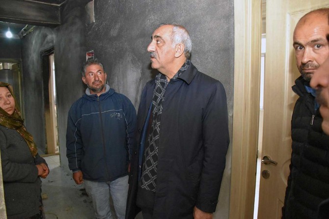 Yangında hasar gören evin onarımını Hilvan Belediyesi üstlendi