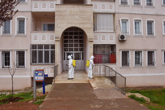Hilvan Belediyesinin işyeri ve çoklu konutlarda dezenfekte çalışmaları sürüyor
