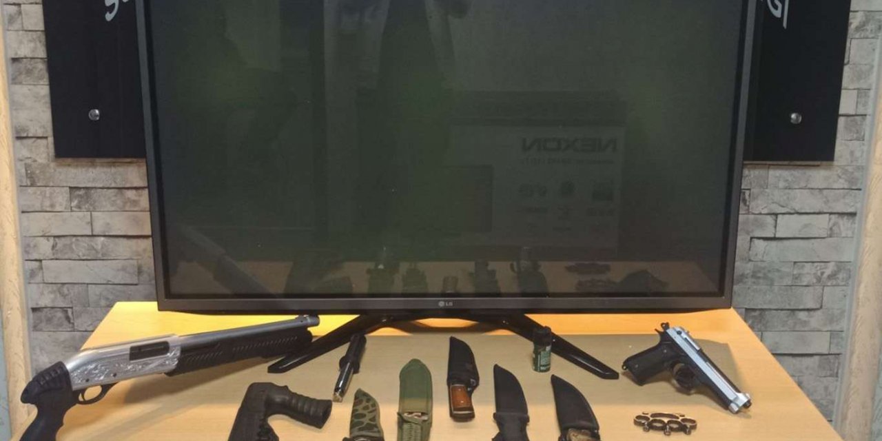 Şüphelinin evinde yapılan aramada, bir adet dolandırıcılık yoluyla elde edilen televizyon, 5 adet bıçak, bir adet tüfek, bir adet tabanca, 2 adet muşta ve bir adet teloskobik jop ele geçirildiği bildirildi.